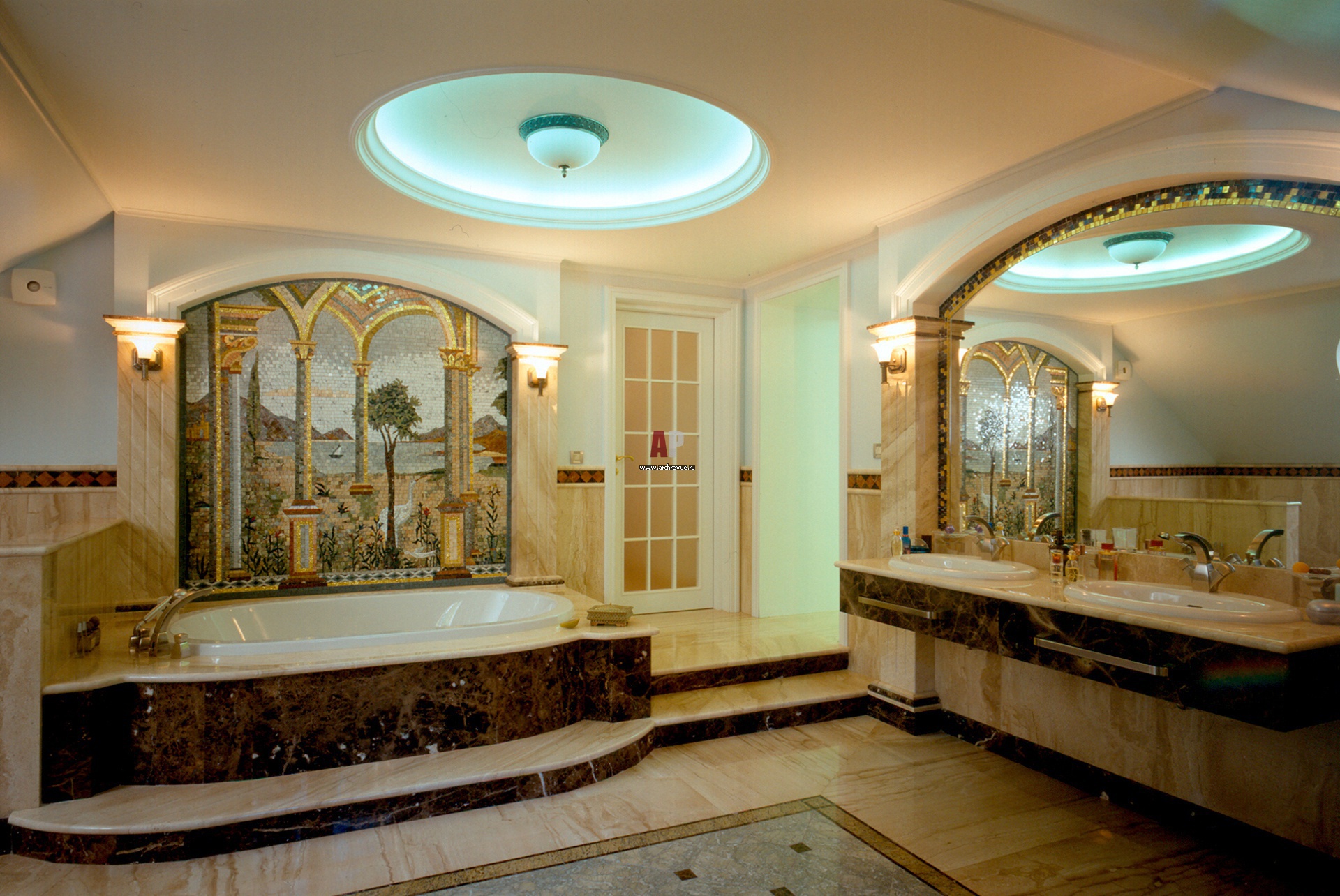 Хозяйская ванная с античными мотивами. Мозаичное панно, художник Ольга Цветкова.