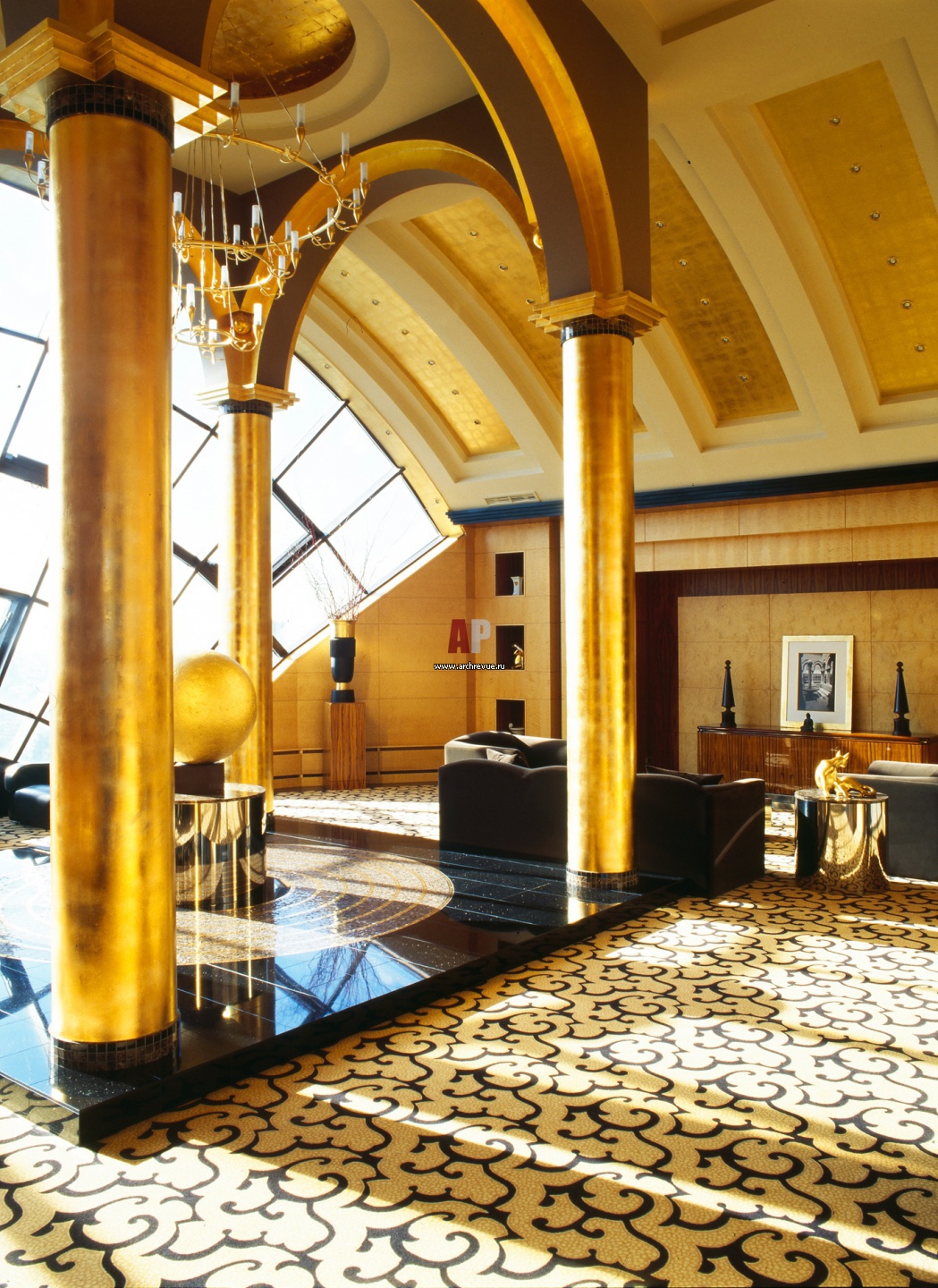 Золотой шар, мраморная мозаика, золотые колонны архитектор спроектировала для того, чтобы обыграть и эстетически поправить несколько неудачную архитектору постройки. Купол с колоннами был в помещении изначально.