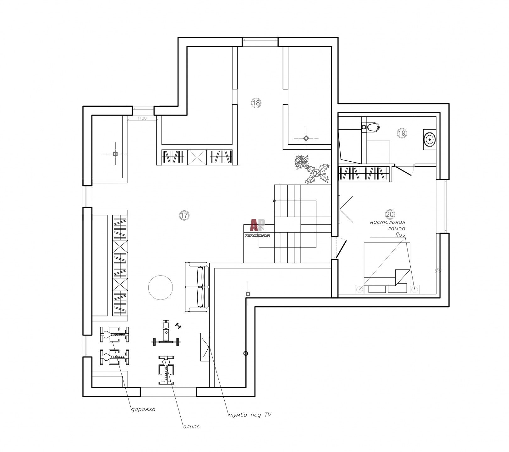 План третьего этажа трехэтажного дома в поселке «Трувиль». Общая площадь – 350 кв. м.