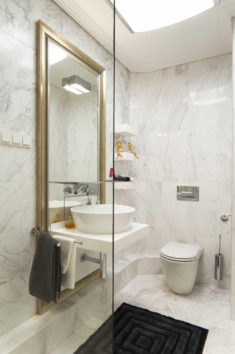 Гостевой санузел исполнен в белых тонах. Сантехника Villeroy & Boch.
