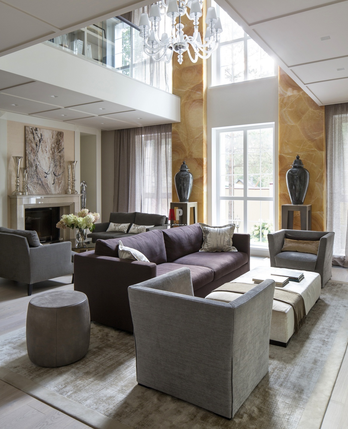 Интерьер каминного зала в традиционном американском стиле с элементами ар-деко. Диваны и кресла, Meridiani. Журнальный стол, консоль и аксессуары, Eichholtz.