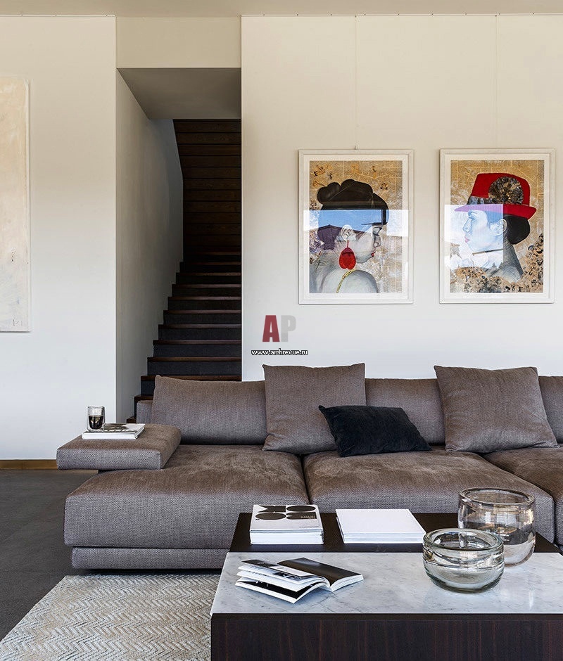 Лестница из гостиной на второй этаж сделана незаметной, чтобы ничто не отвлекало от пейзажа за окном.