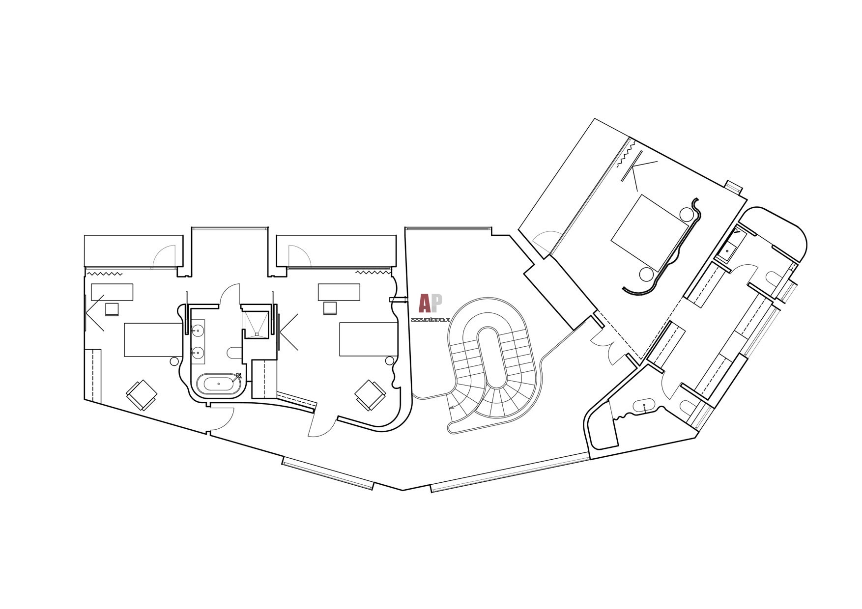 Планировка 2 этажа 2-х этажного дома. Общая площадь – 600 кв. м.