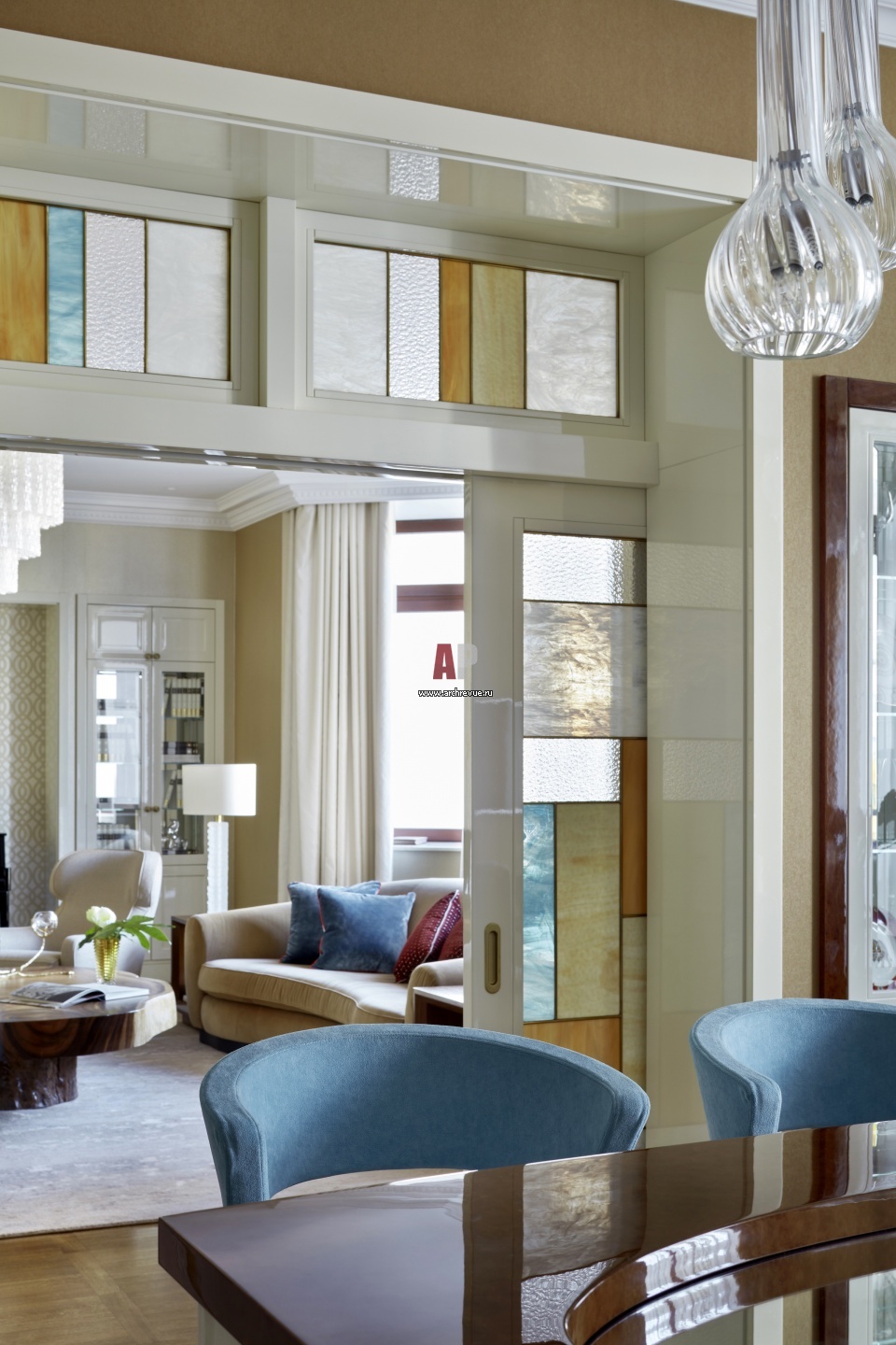 Цветовая палитра отражает любовь заказчиков к теплым оттенкам. Использованы «вкусные» оттенки: кремовый, карамельный, белый шоколад, молочный шоколад. Теплую гамму успокаивает небесного-голубой.