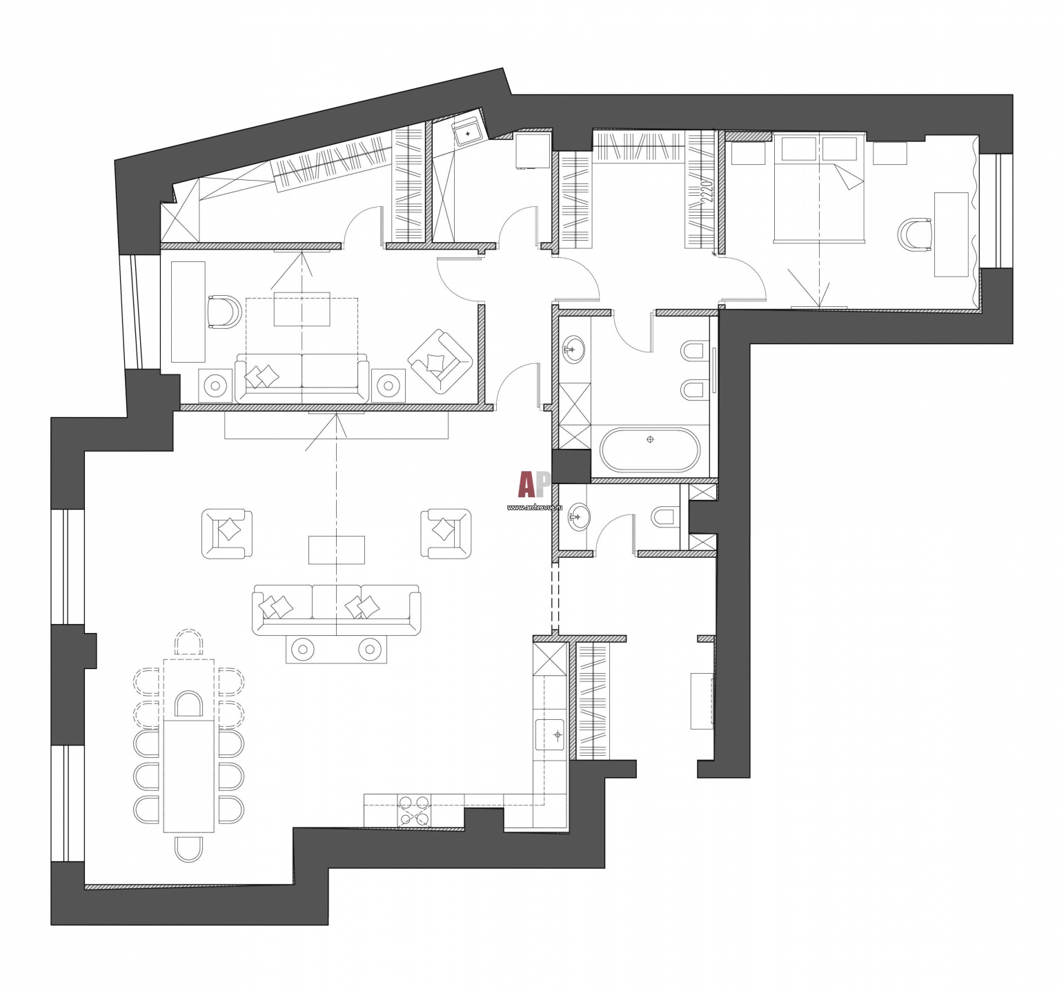 Интерьер трехкомнатной квартиры в стиле ар-деко