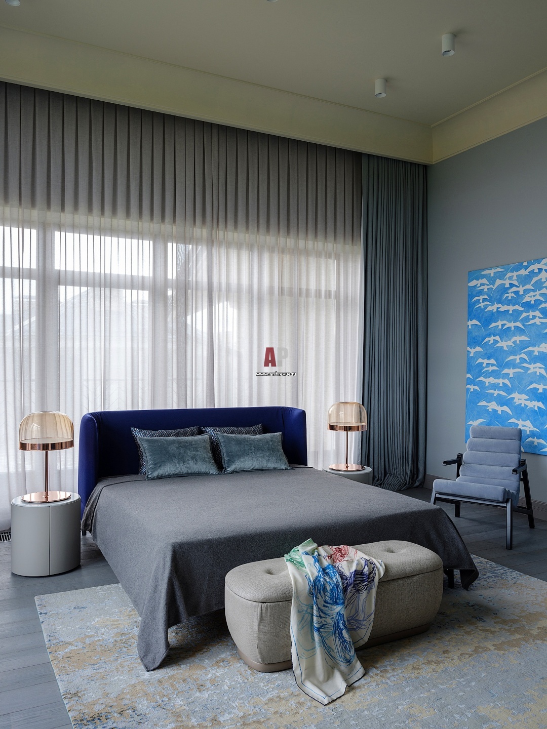 Интерьер трехэтажного дома с мягкими красками и теплыми фактурами