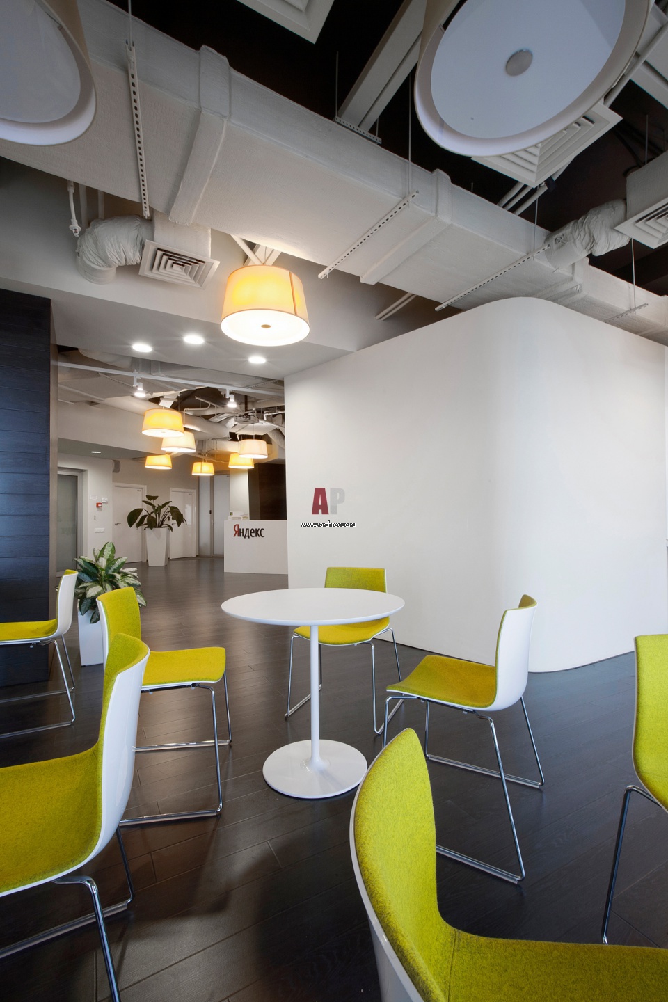 Столовая находится вблизи главного входа. Она решена в общем пространстве, без стен и перегородок. Авторы проекта Петр Зайцев, Арсений Борисенко, архитектурное бюро za bor.