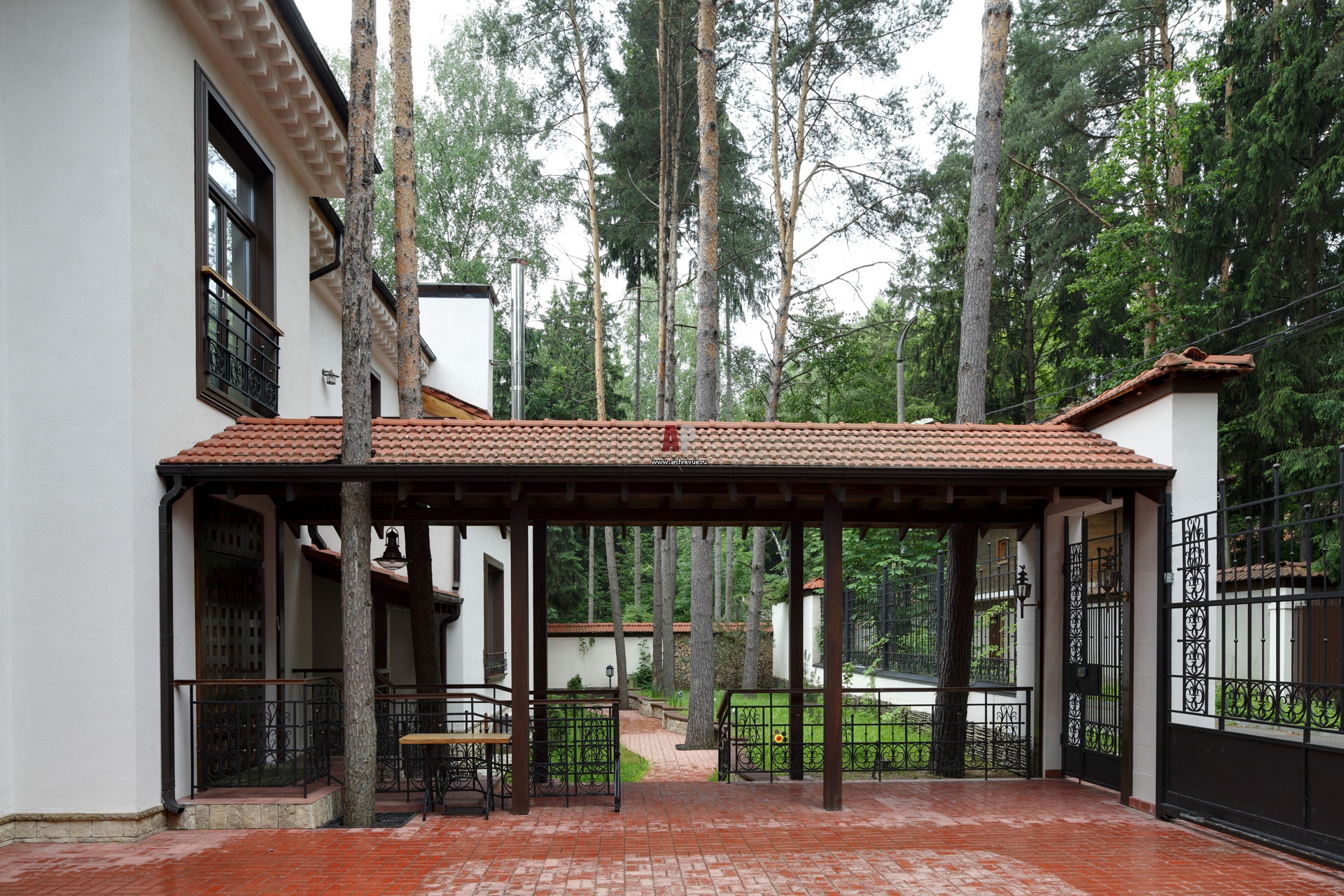 От ворот до дверей дома ведет крытая галерея, защищающая от осадков.