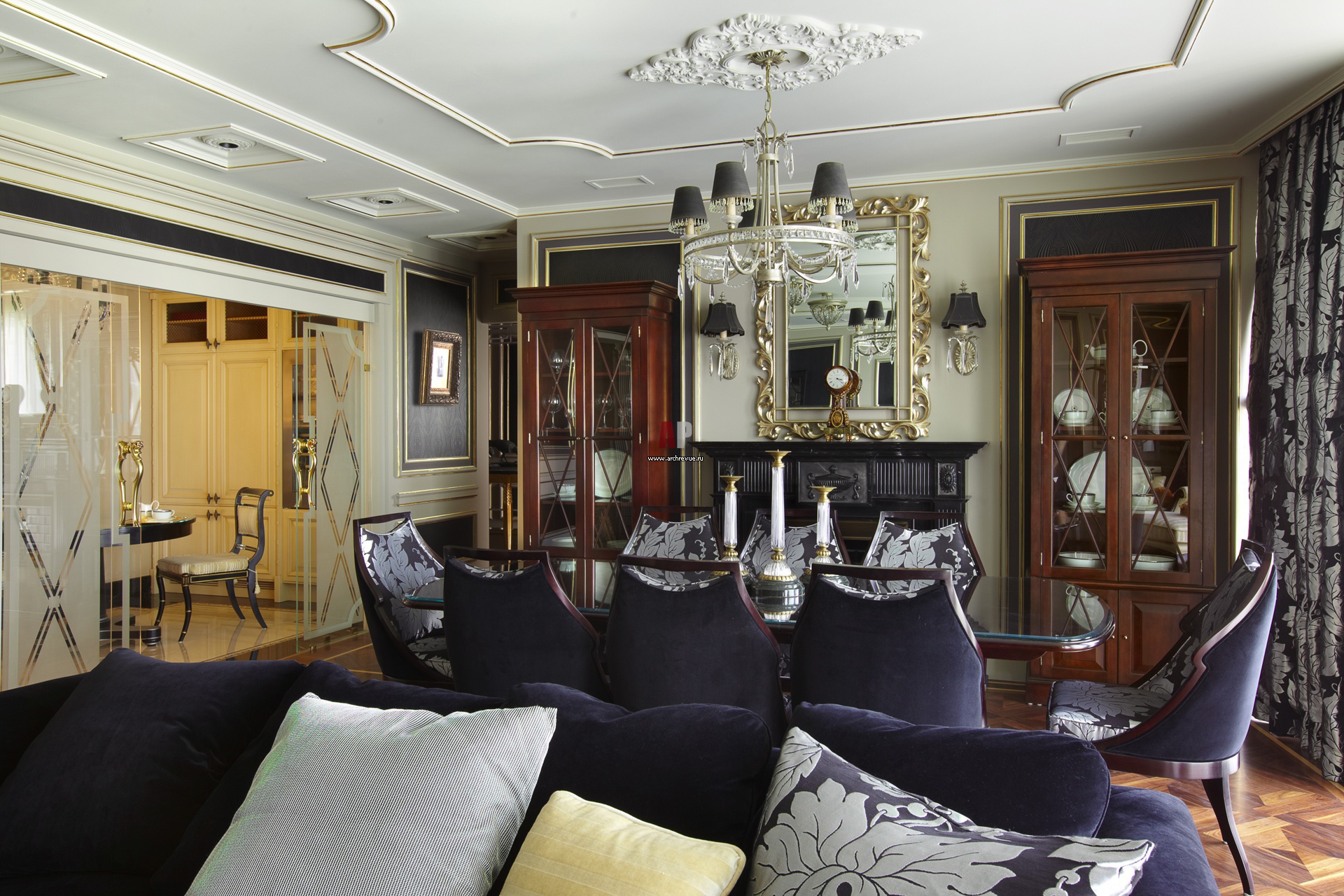 Характерный элемент зоны столовой – камин. Без него немыслим ни один классический интерьер.