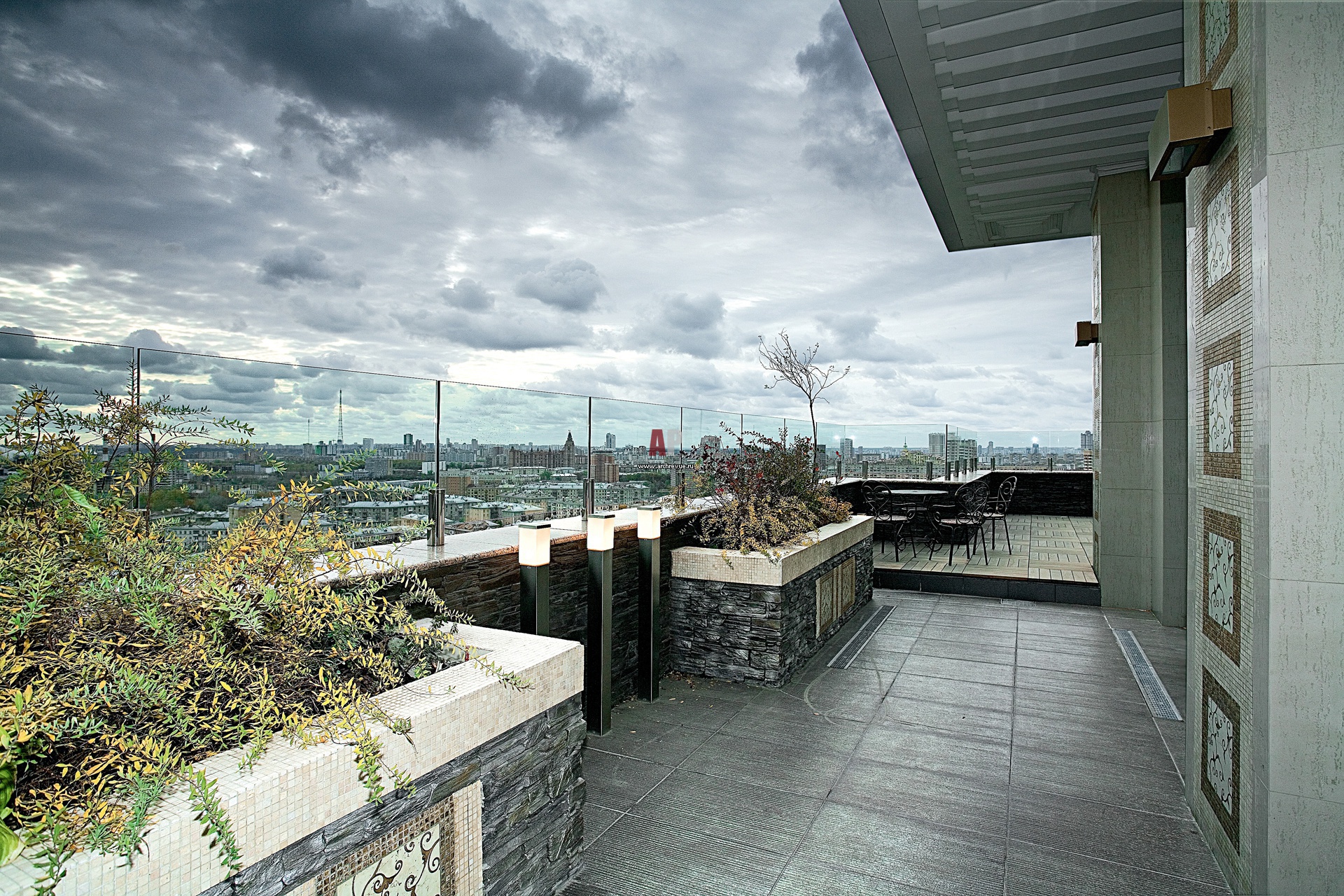 Помимо сада на крыше устроена зона отдыха с встроенной уличной кухней. Конструкция, функционально заменяющая кухонную мебель, имеет необходимый подвод воды, освещения и электроснабжения.
