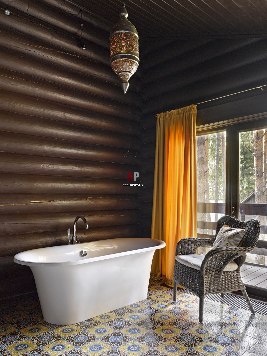 Восточная ванная комната. Марокканский фонарь, андалузская керамическая плитка, поставщик «Грета Вульф».