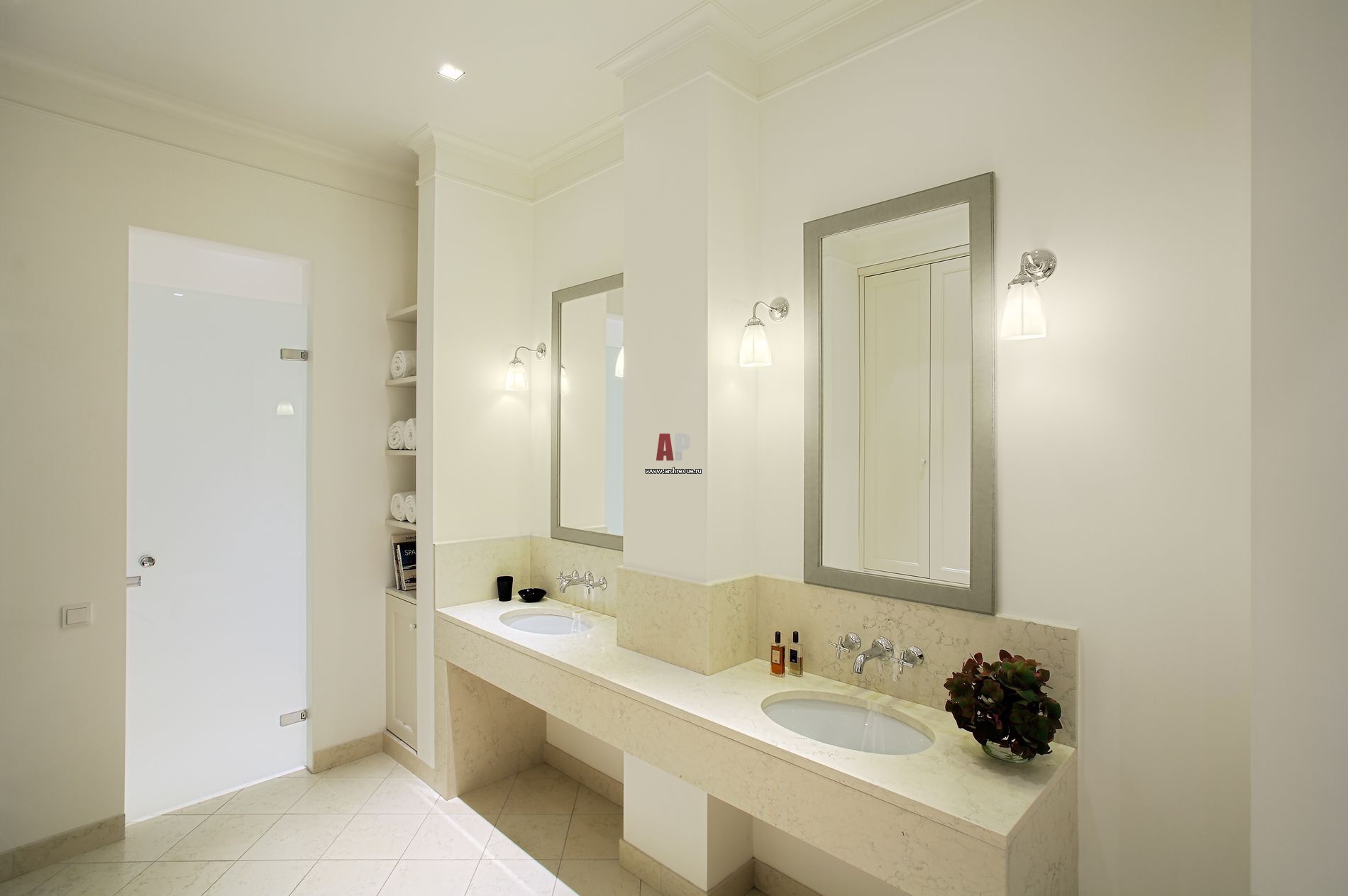 Санузел выдержан в светлой цветовой гамме. Он воспринимается как пространство чистоты.