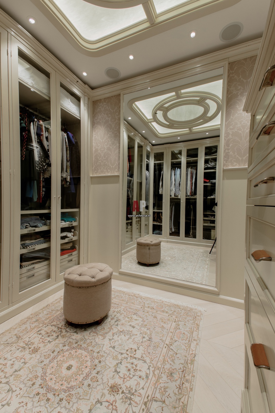 Гардеробная в пастельных тонах. Мебель, Giorgio Piotto. Авторский потолочный витраж из стекла с патиной и слюдой.