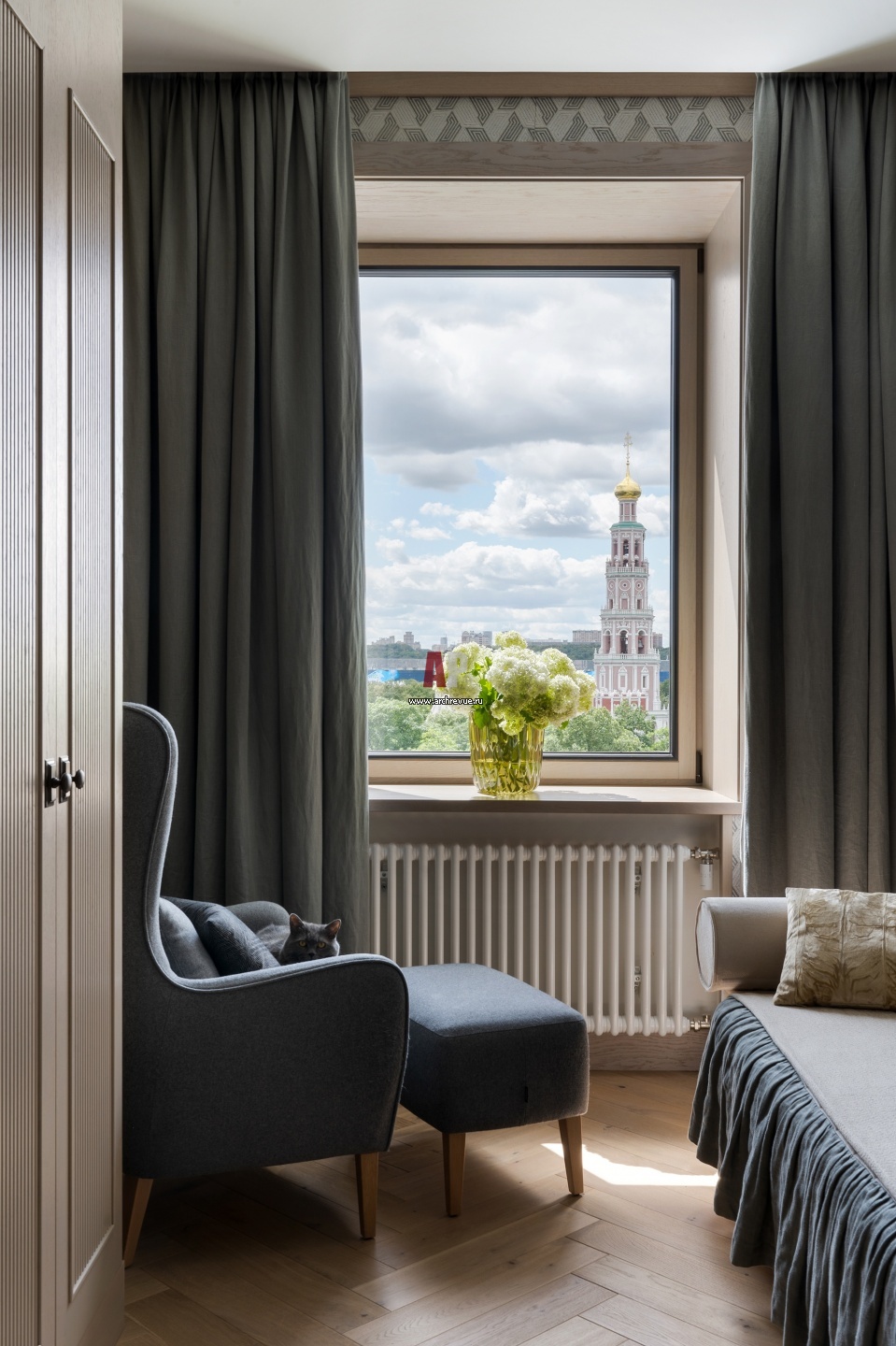 Квартира с открыточным видом на Новодевичий монастырь. Интерьер кабинета.