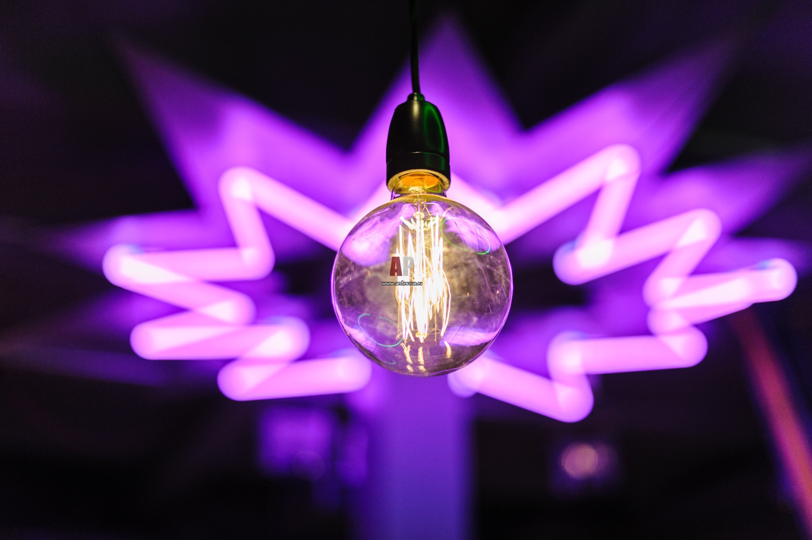 Фото интерьера кафе. Потолочная неоновая подсветка, поставщик «Неон Проект».