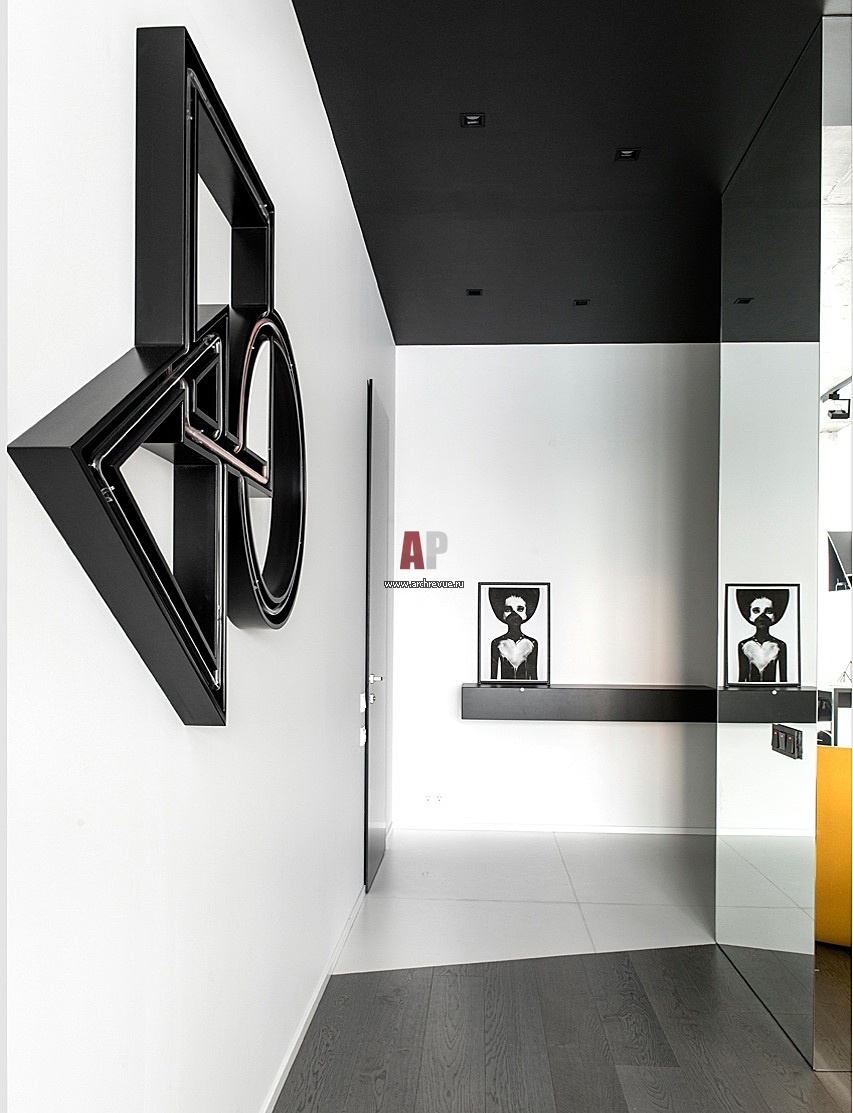 Интерьер прихожей выполнен в монохромной цветовой гамме.