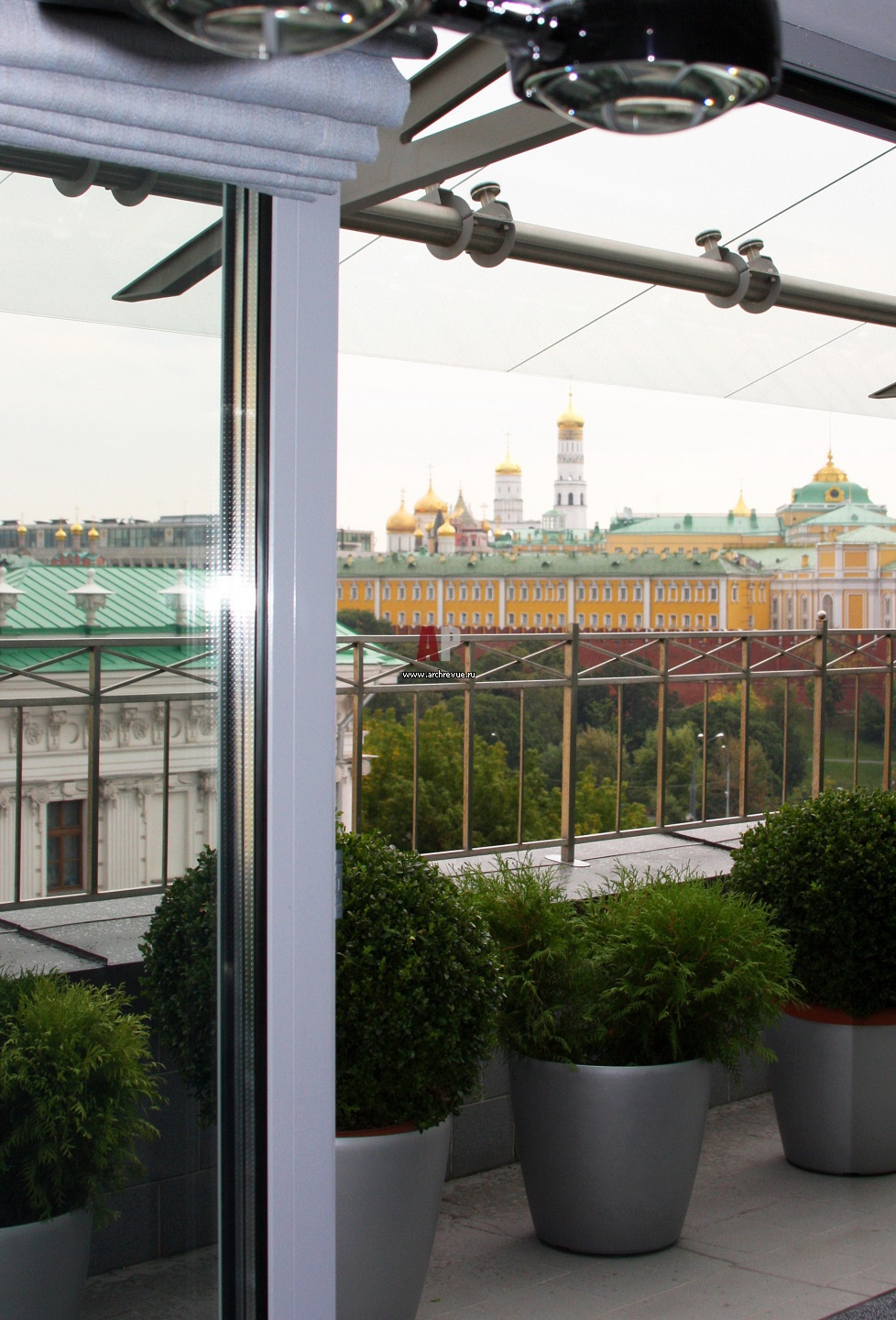 Кабинет руководителя с панорамным остеклением и выходом на открытую веранду.