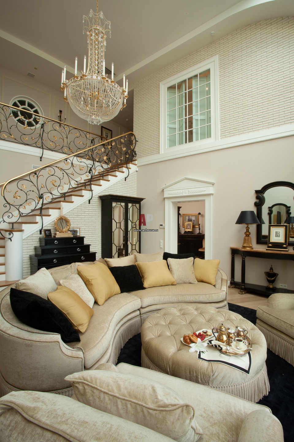 Двухчастное оформление стен гостиной (покраска и декоративный кирпич) визуально масштабирует пространство и придает помещению комфортный для глаза объем.