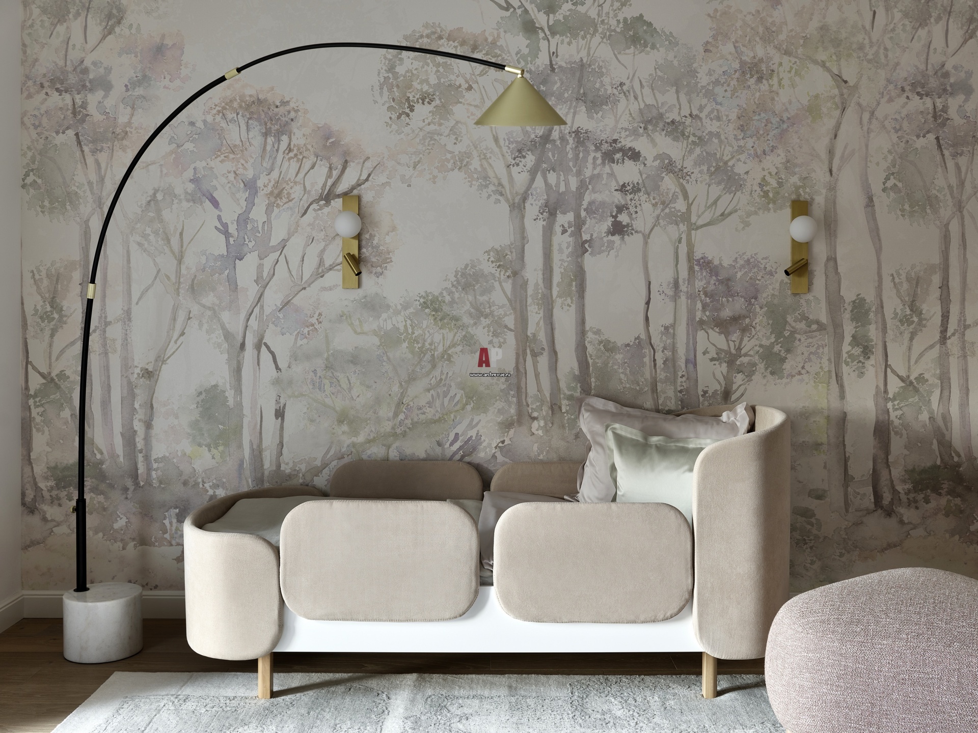 Комната девочек нежная и воздушная. Она не перегружена предметами, интерьер имеет изящные линии и формы. Кровать, Askona. Обои, Loymina, коллекция Etude Aquarelle. Торшер, Aromas del Campo, модель Hinoo. Ковер ручной работы, шерсть и арт-шелк, Индия.