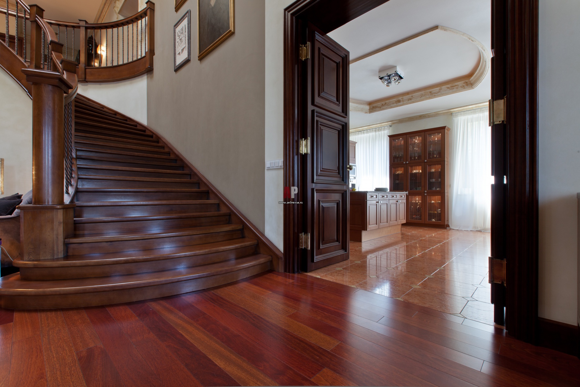 Фото интерьера лестницы дома в стиле неоклассика