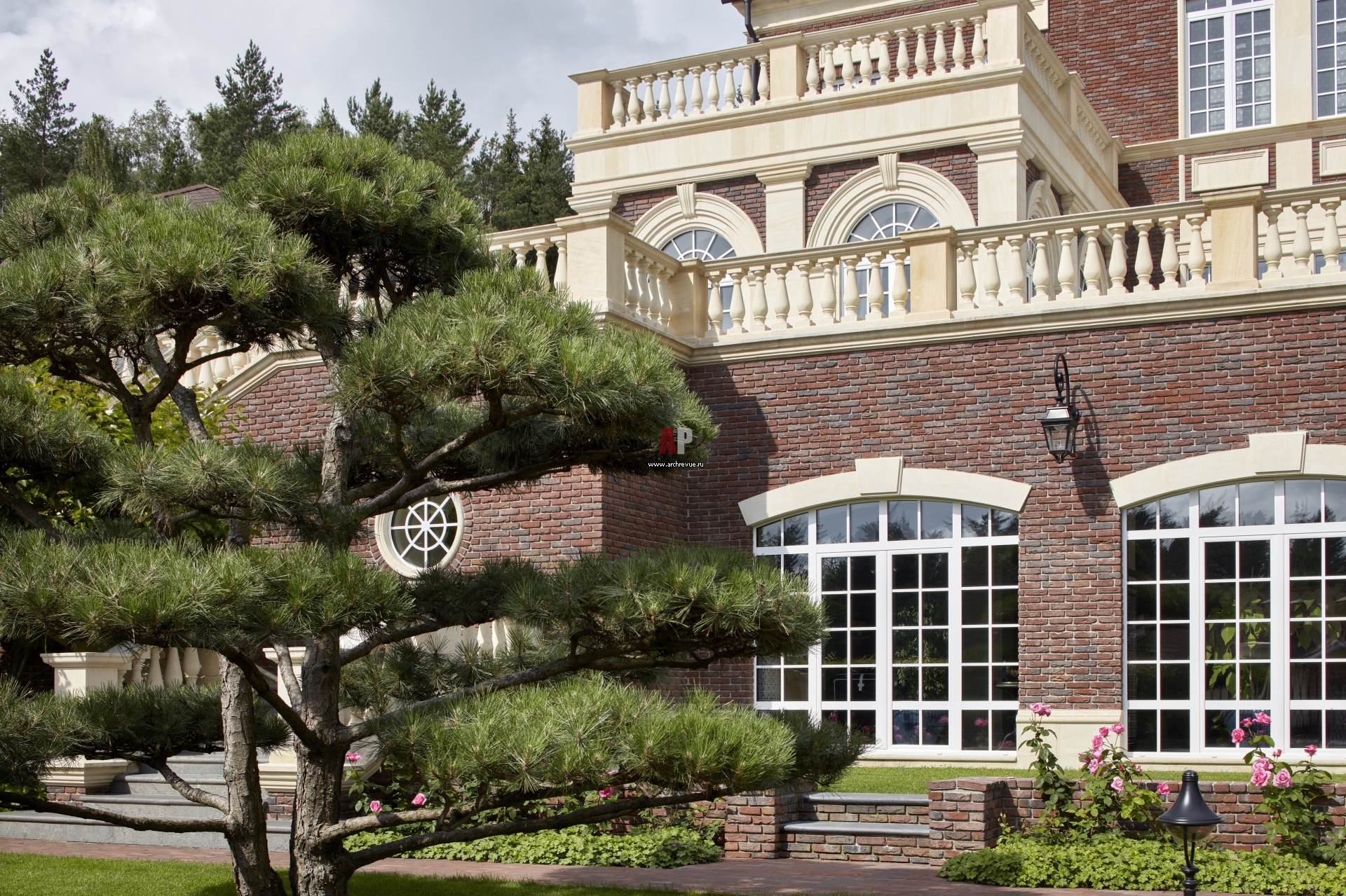 Ландшафт дома сложный из-за большого перепада по высоте, но очень благоприятный для архитектуры. Ландшафтное решение было разработано автором проекта, в том числе декор забора. Ландшафт насыщен инженерными системами авто-полива, электроснабжения, охранной сигнализации и автоматикой погодного мониторинга.
