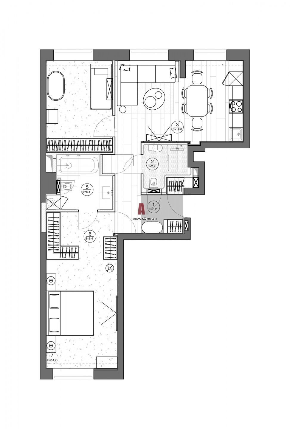 Планировка квартиры площадью 70 кв. м с эргономикой, не уступающей жилью 150 кв. м.
