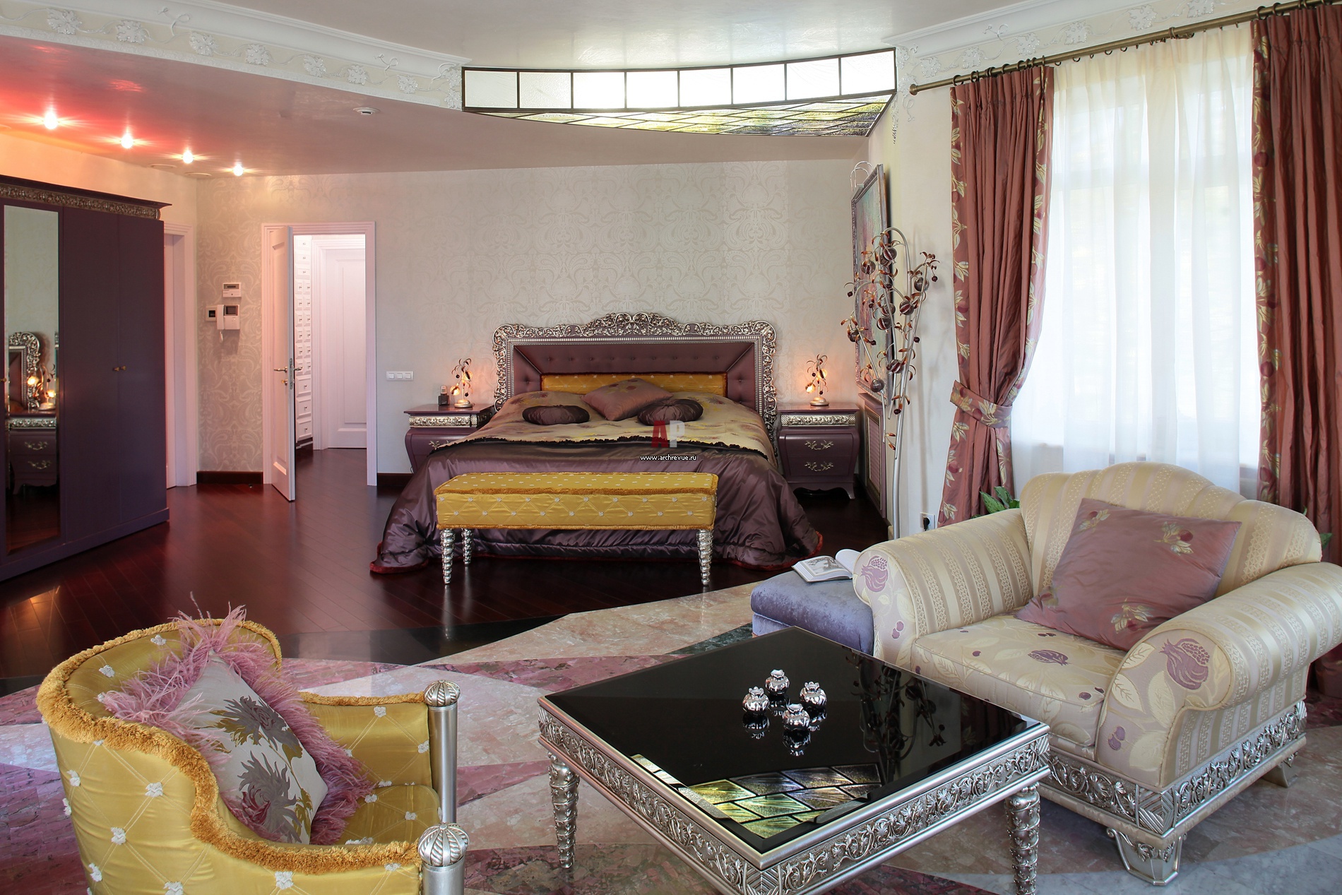 В оформлении интерьера будуара использовались витражи и авторская лепнина. Мебель, Elledue.