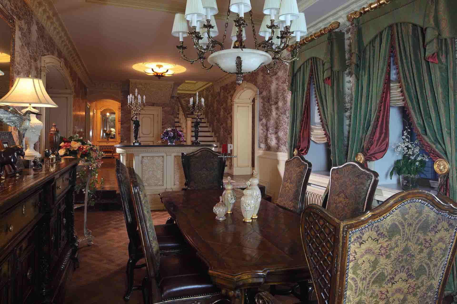 Вид со стороны столовой на лестничный холл. Лестница скрыта между несущими конструкциями и не является доминантой пространства.