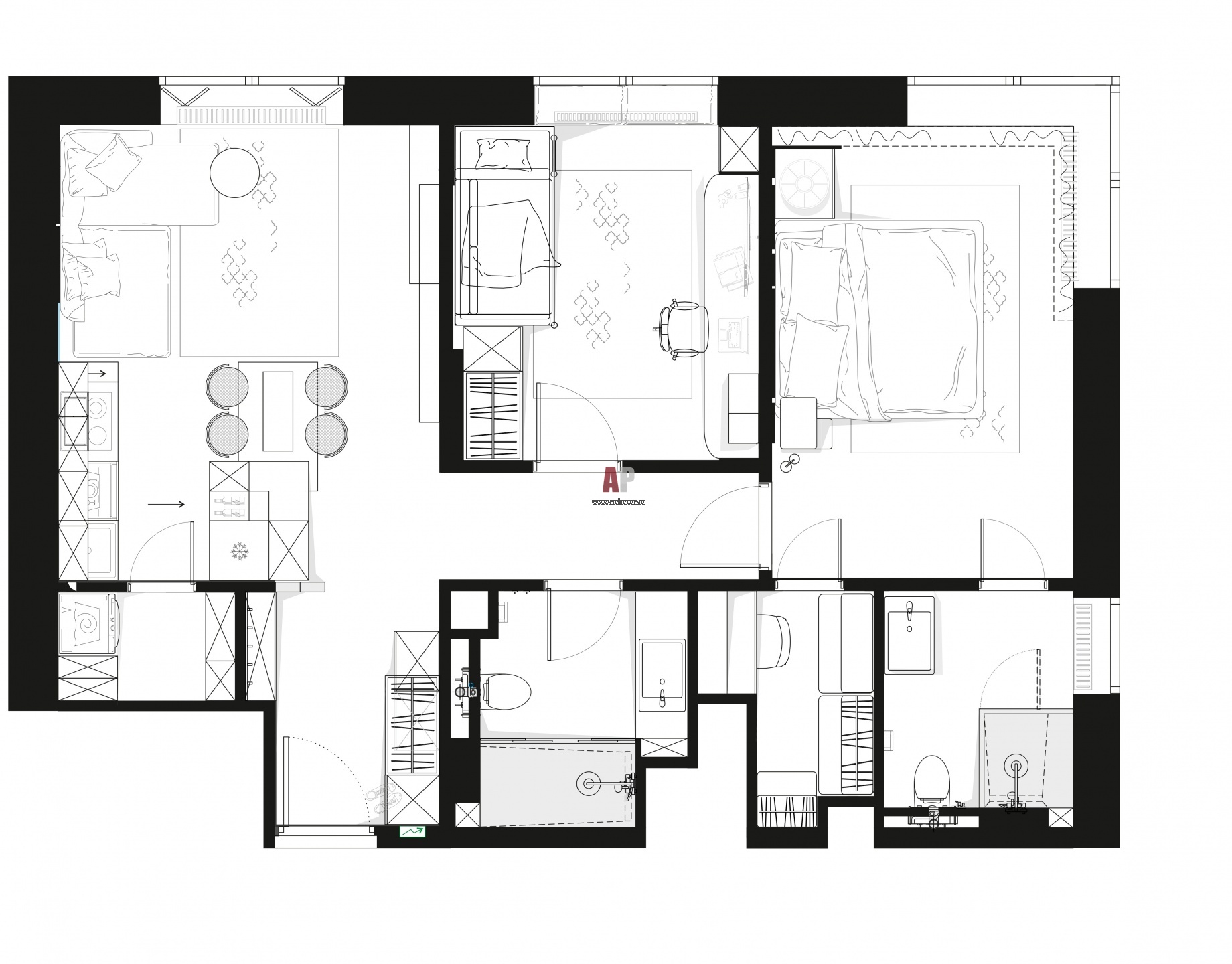 Перепланировка небольшой 3-х комнатной квартиры в ЖК «Метрополия», 67 кв. м.