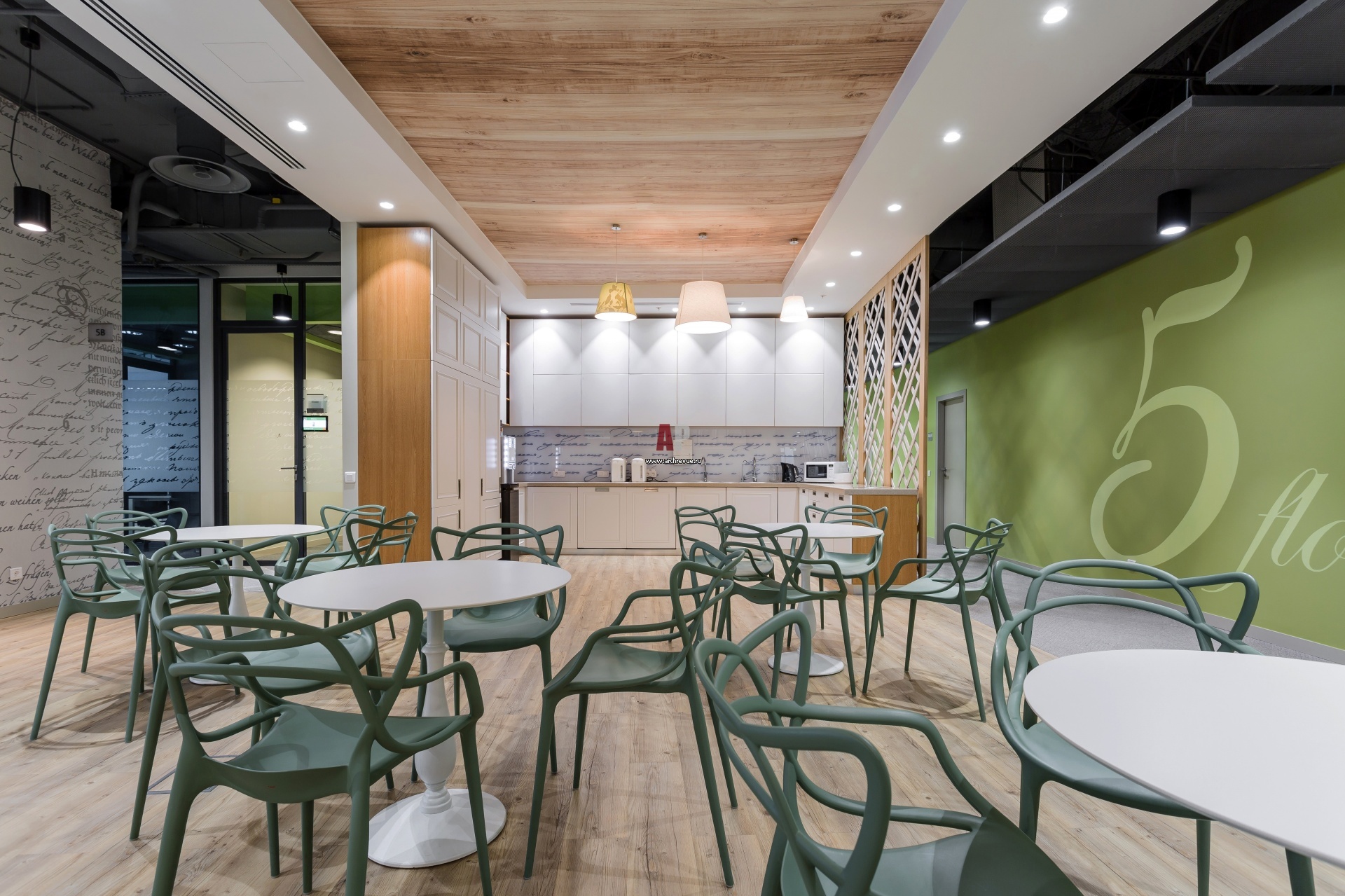 Кофе-поинт и столовая на рабочем этаже офиса Microsoft.
