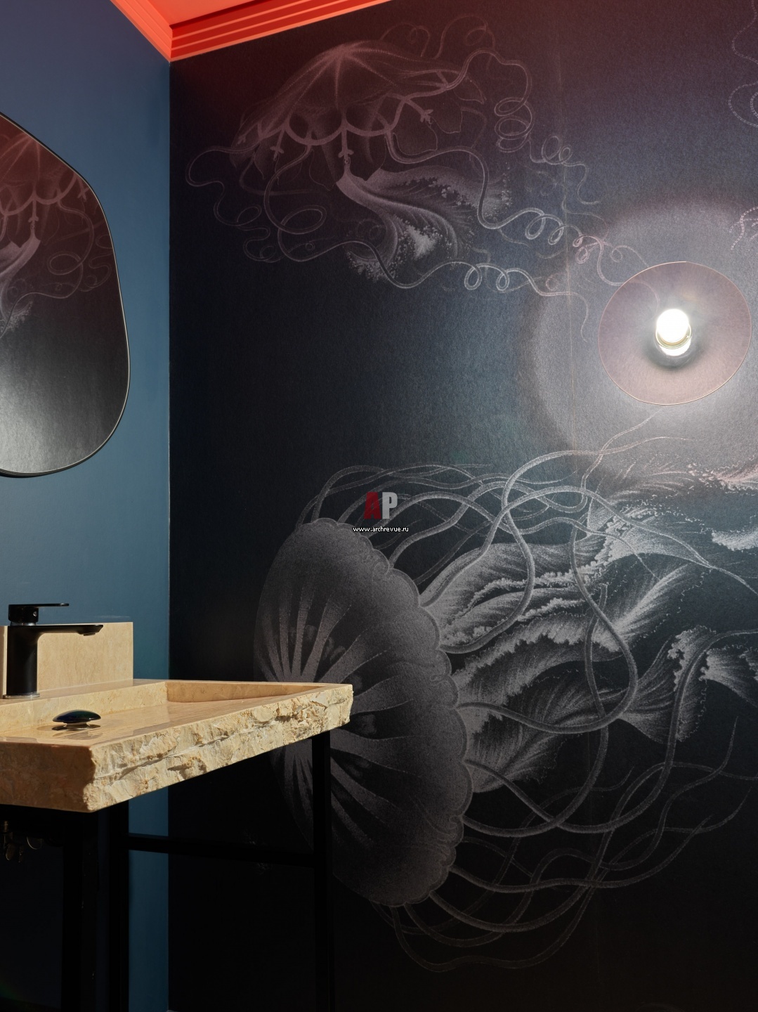 Украшение гостевого санузла – панно «Медузы», оно выполнено по индивидуальному заказу.