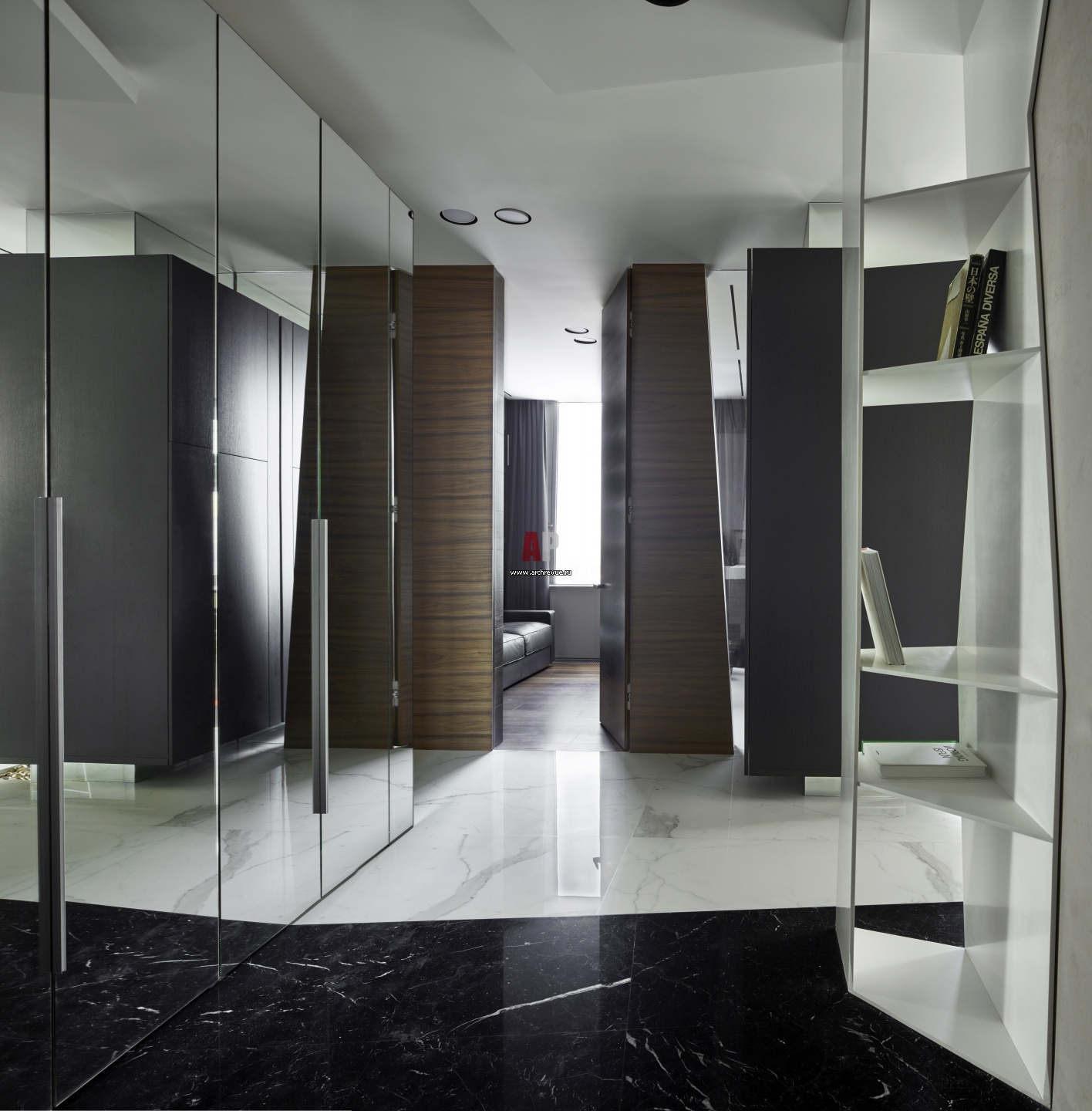 Интерьер холла. Стены и двери L'Invisible облицованы шпоном американского ореха.