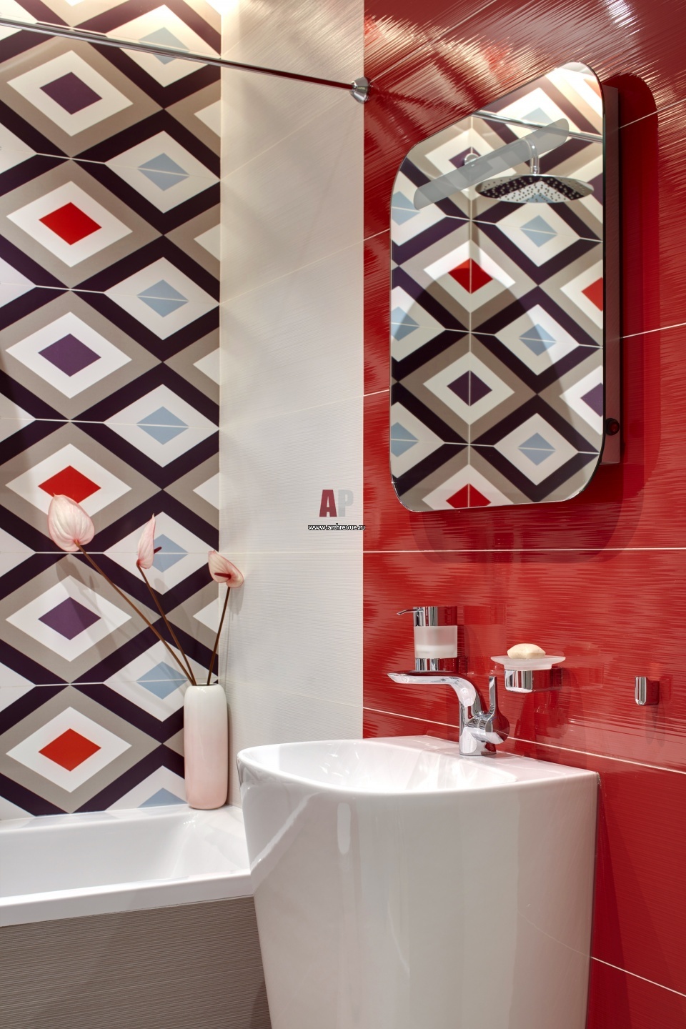 Интерьер детского санузла с геометрическим орнаментом.