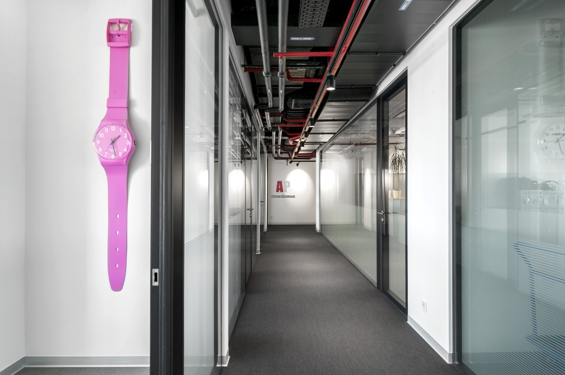 Фото интерьера рабочего блока офиса Swatch Group в Москве.