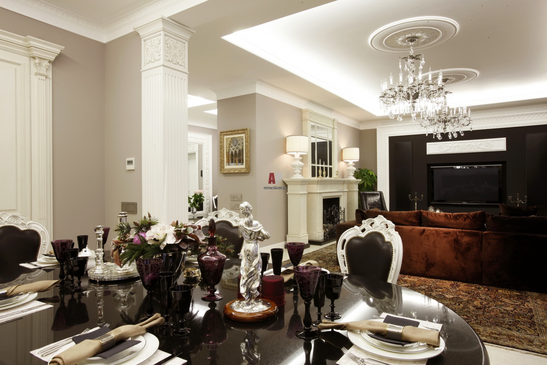 Кухня-столовая соединена с гостиной широким порталом. Пилястры, обеденная группа, Giorgio Piotto.