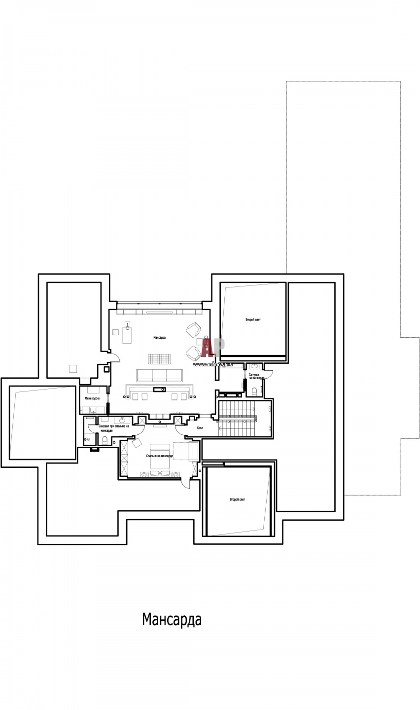 План третьего этажа трехэтажного дома в Подмосковье. Общая площадь – 1400 кв. м.