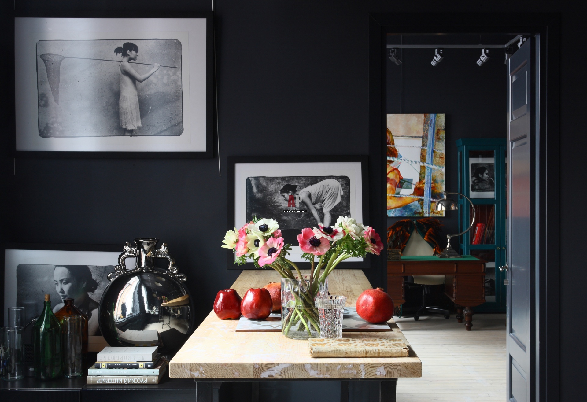Помещение офиса имеет большую высоту (высота потолков – 4 метра). Чтобы подержать масштаб, дверные проемы были увеличены. Барная стойка сделана на заказ: опора отлита из черного металла, столешница выполнена из массива дерева с красивой фактурой.