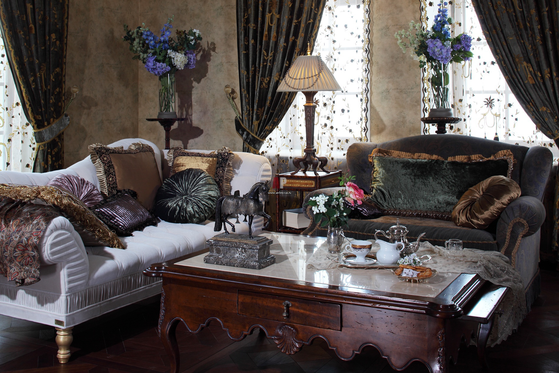 Шторы в особняке сшиты на заказ на фабрике La Contessina, поставщик AVANTI. Орнамент выполнен по эскизам архитекторов.