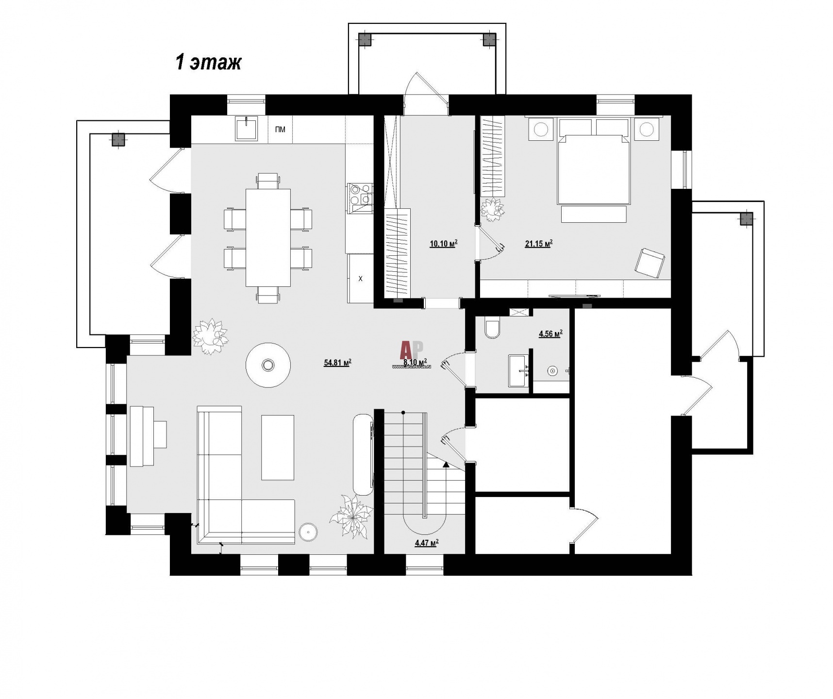 Планировка 1 этажа небольшой 2-х этажной драчи на Истре