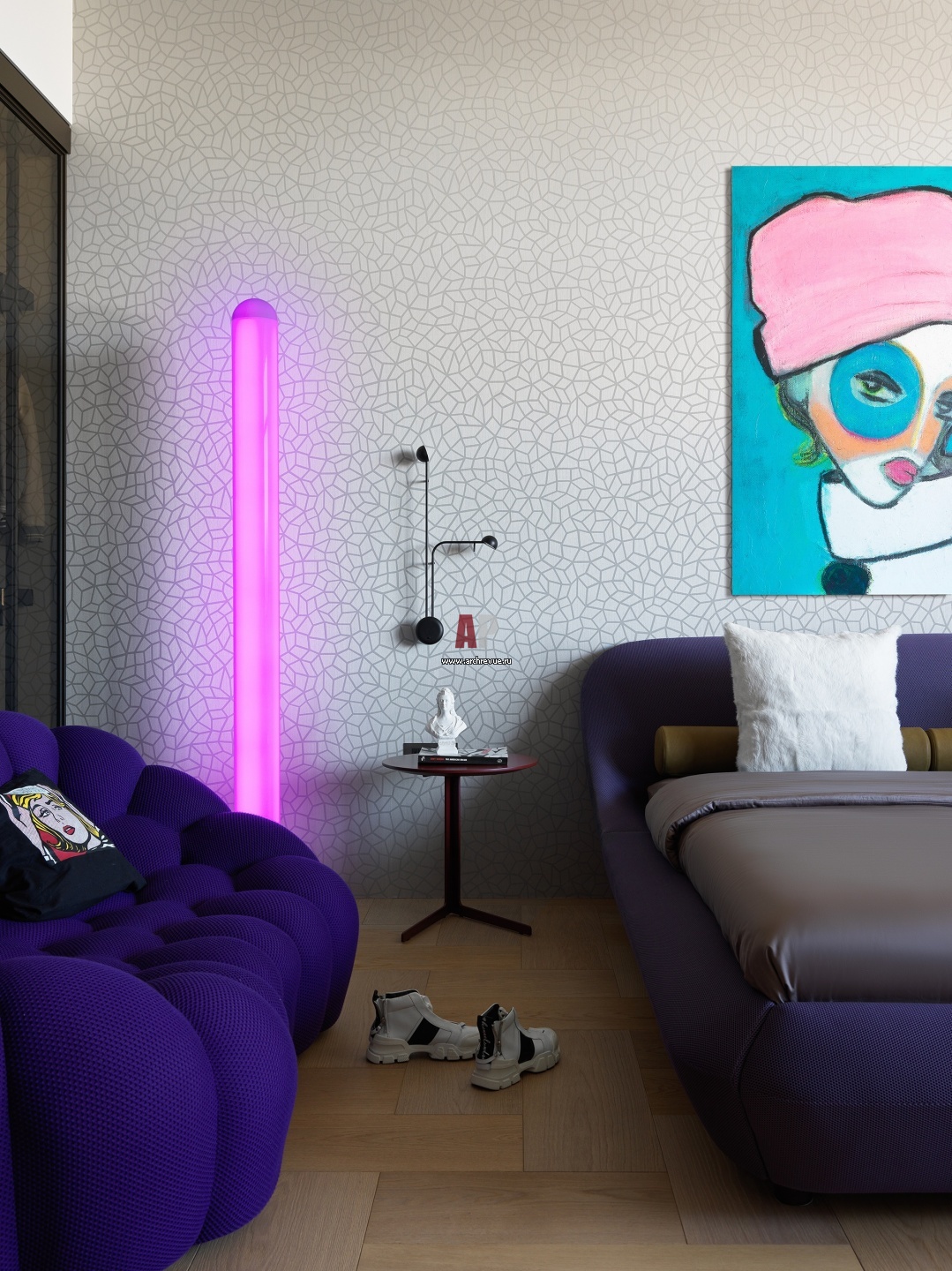 Комната дочери. Кровать, диван, Roche Bobois. Обои, Masureel. Торшер, Artemide.