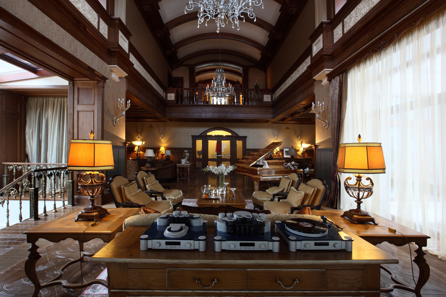 Стены декорированы деревянными панелями и тончайшей лепниной.