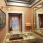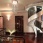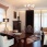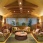 Полы гостиной выстланы модульным паркетом из красного дерева, поставщик «Мир Паркета».