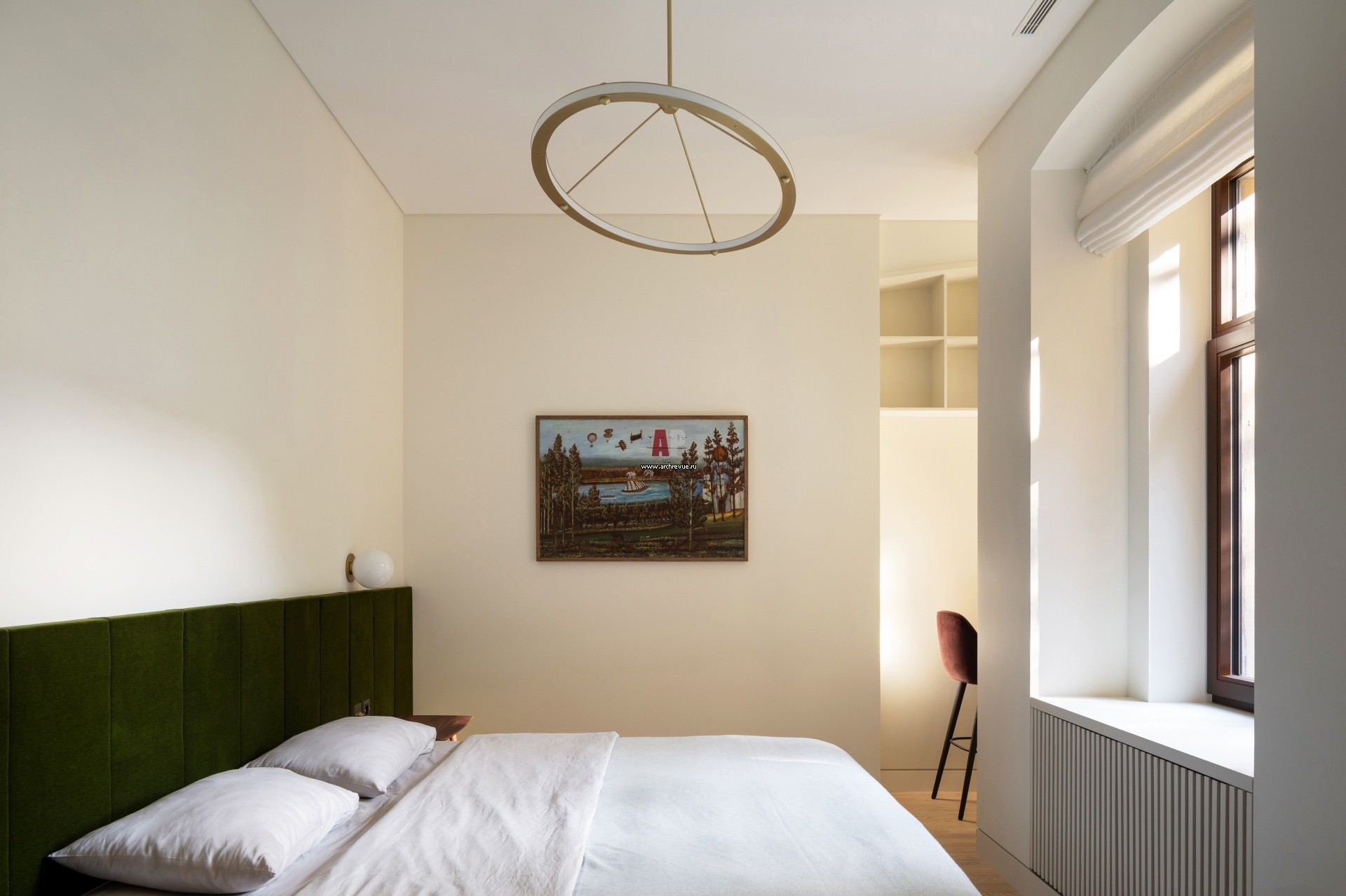 Белая квартира в дореволюционном доме в центре Москвы. Хозяйская спальня.