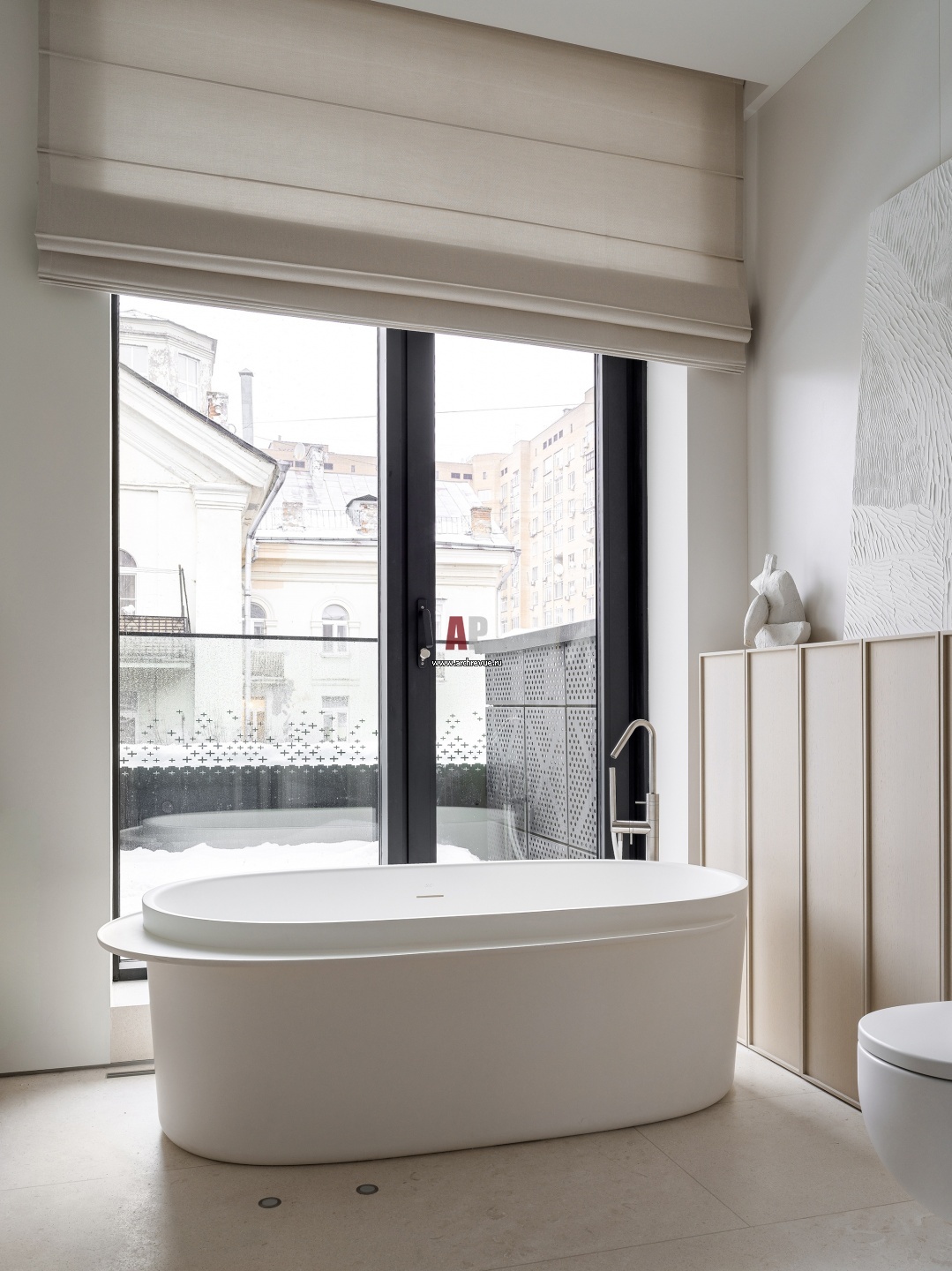 Женская ванная комната с высоким окном. Ванна, Ex.t, модель Plateau.
