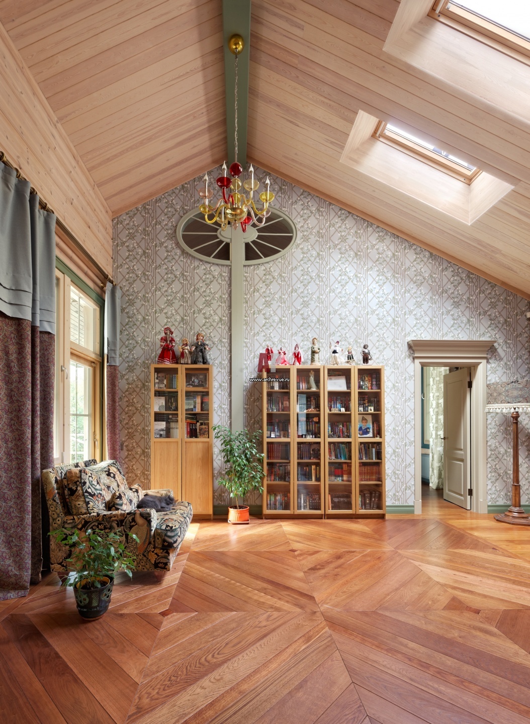 Фото интерьера мансарды дома в стиле кантри Фото интерьера библиотеки дома в стиле кантри
