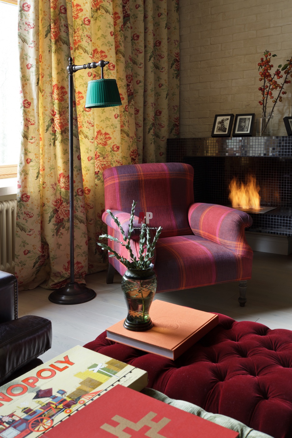 Портал био-камина Planika выложен мраморной мозаикой. Стена из крашеного кирпича имитирует дымоход.