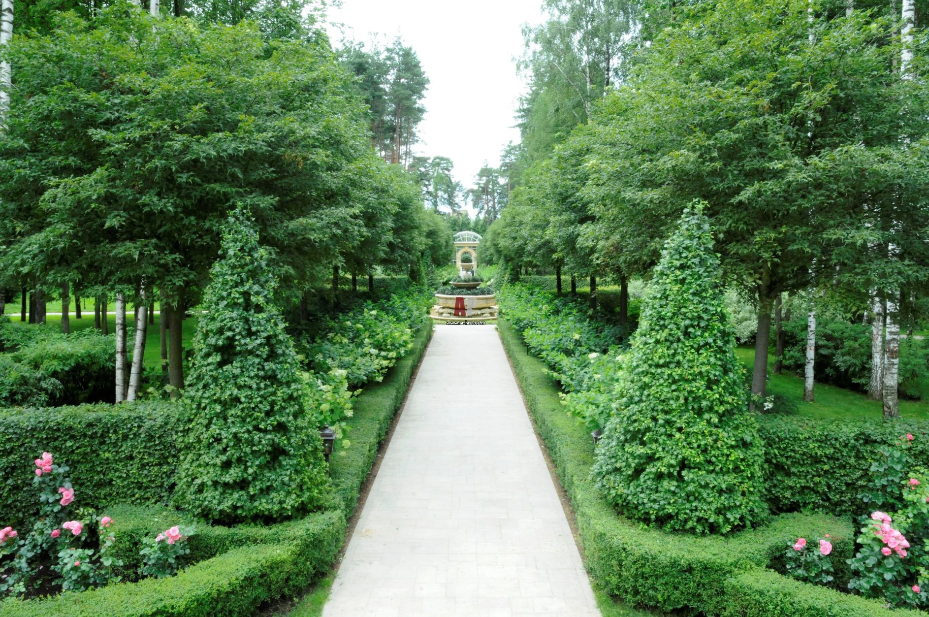 В парке устроены три водоема: большой фонтан (на главной оси парка, в центре липовой аллеи), система прудов для нимфей (на оси оранжереи и руин) и пруд напротив западной террасы.