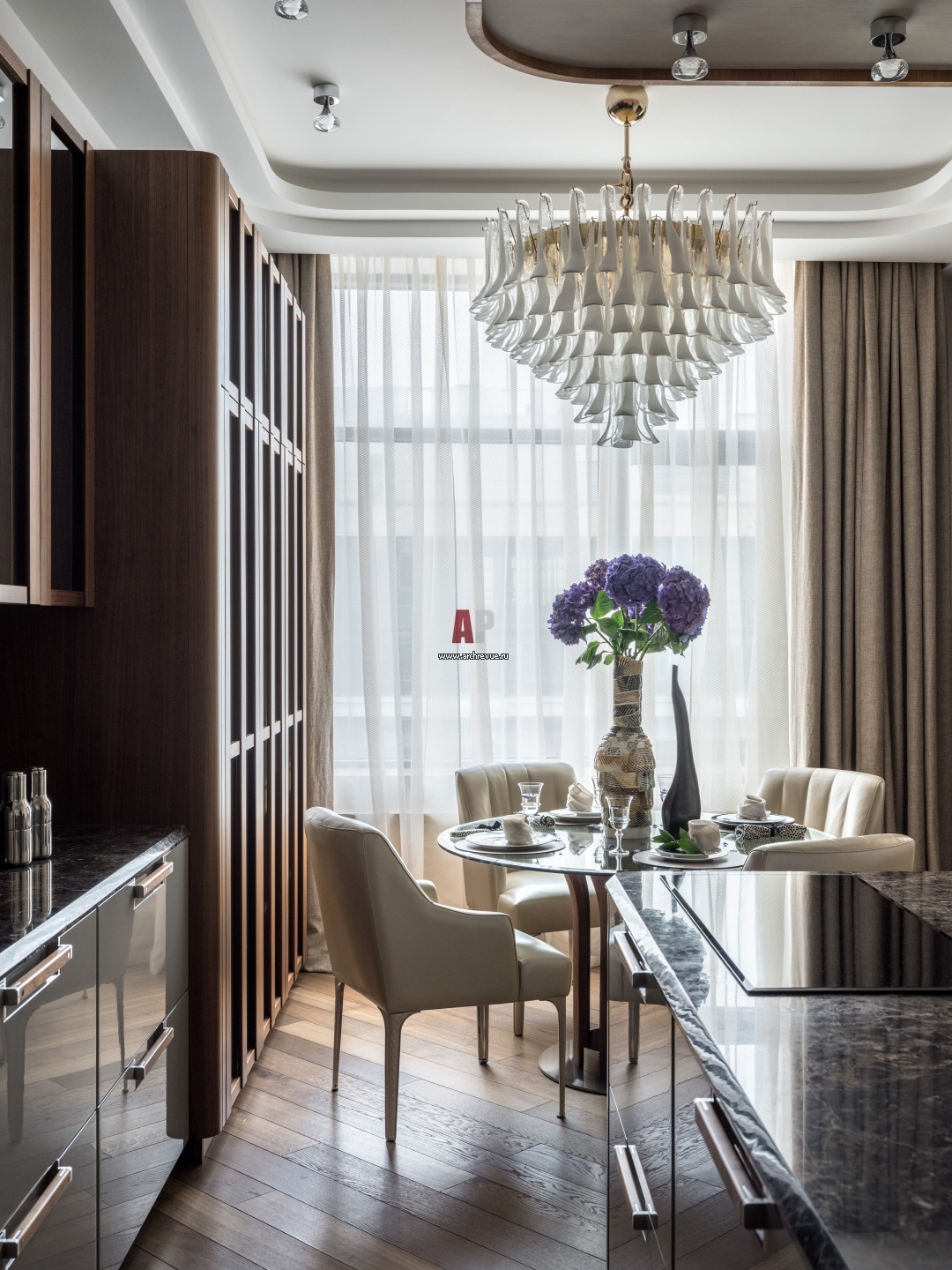 Квартира для временных остановок в городе. Интерьер кухни-столовой.