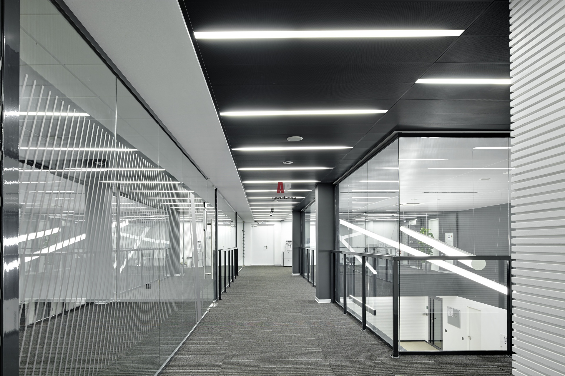 Минималистский интерьер выполнен в черно-белой гамме, которая удачно вписывается в бренд и имидж компании Volkswagen.