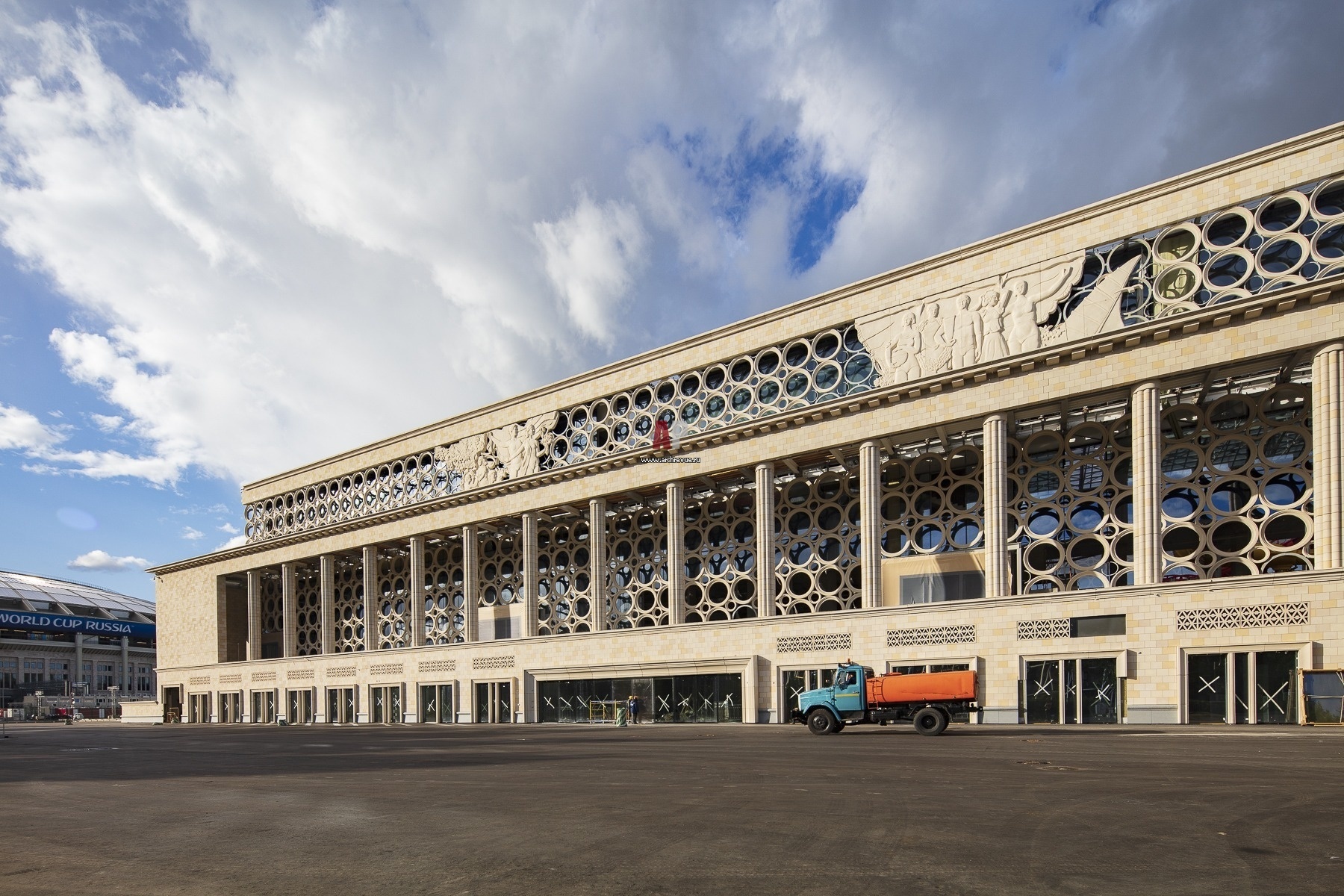 Сохранив архитектуру и отдельные элементы фасадов, архитекторы увеличили здание в более чем два раза: с 19700 до 56500 кв. м. Достроили его в длину, надстроили объем в высоту. В итоге нижняя часть постройки повторяет формы исторического здания, а южный и северный фасад с аутентичными элементами и колоннадами вытягиваются и рифмуются с Малой спортивной ареной Лужников.